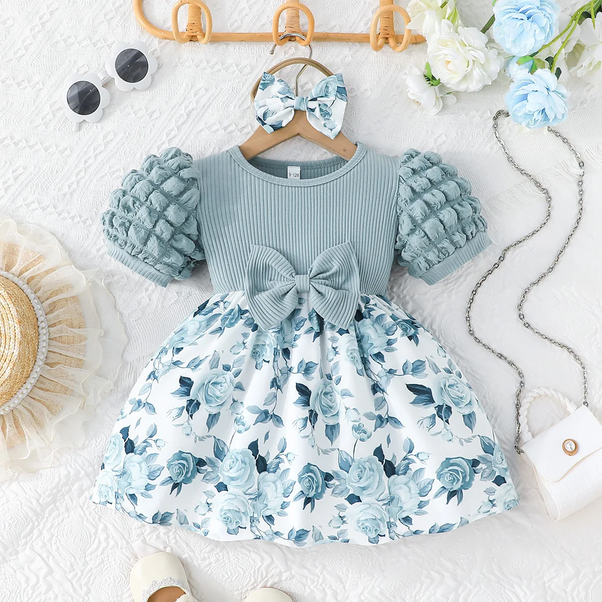Summer Flower Baby Girl Dress Floral Princess Dresses Birthday Party Wedding Short Sleeved Bow Tie Clothes for Kids