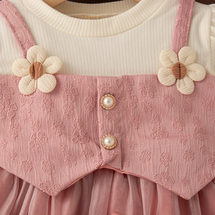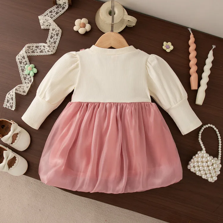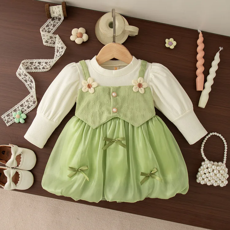 New Puff Sleeve Kids Clothes Sets Solid Pattern Cotton Dress for Little Baby Girls for Autumn Clothes for Kids