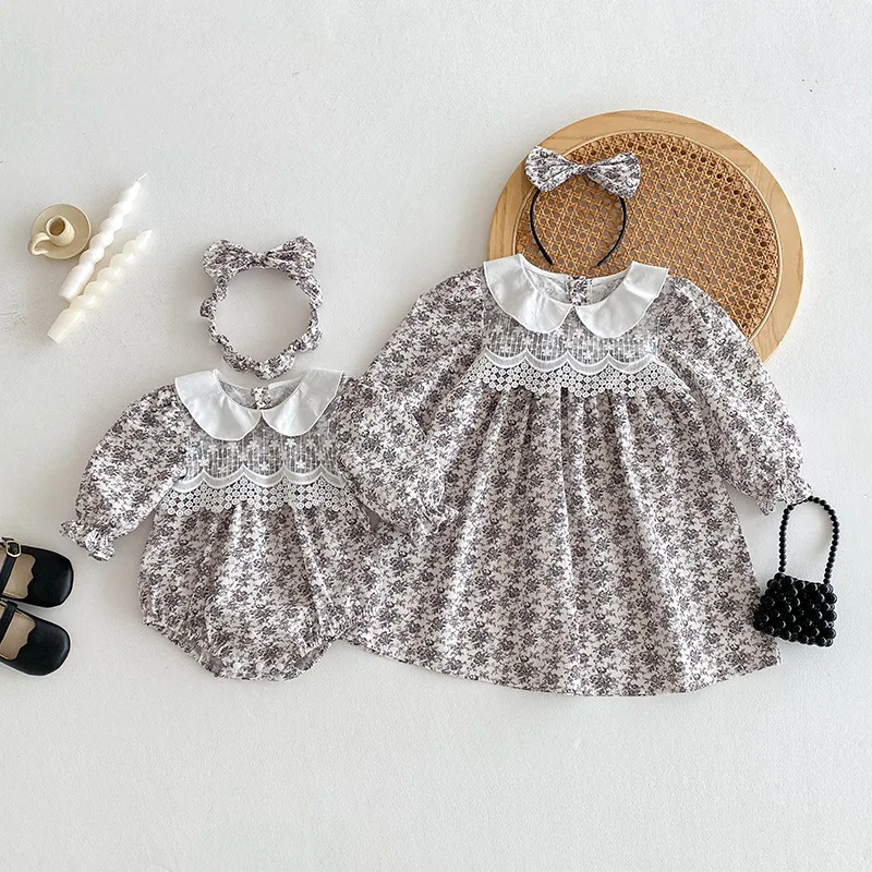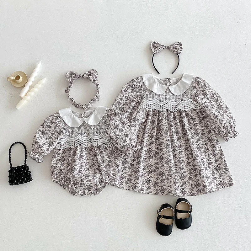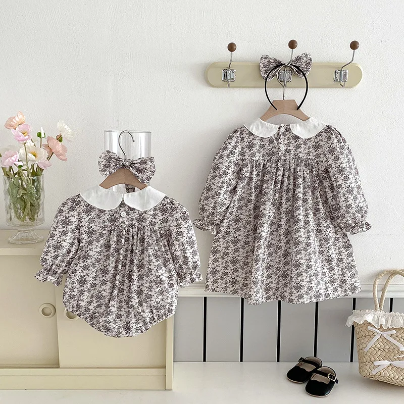 Autumn Design Newborn Baby Flower Romper Jumpsuit Infant Toddler Girls Ruffles Dress O-Neck Collar Clothes for Kids