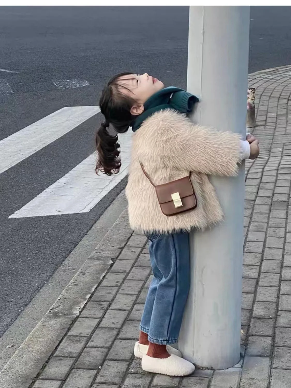 2026 Winter Fashion Girls Furry Coat Mixed Colors Casual Style Single Breasted Closure Clothes for Kids