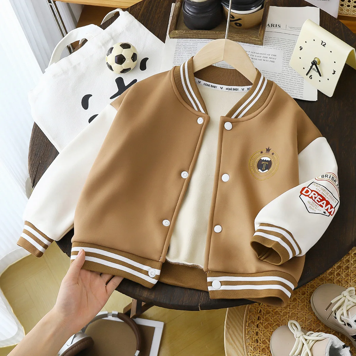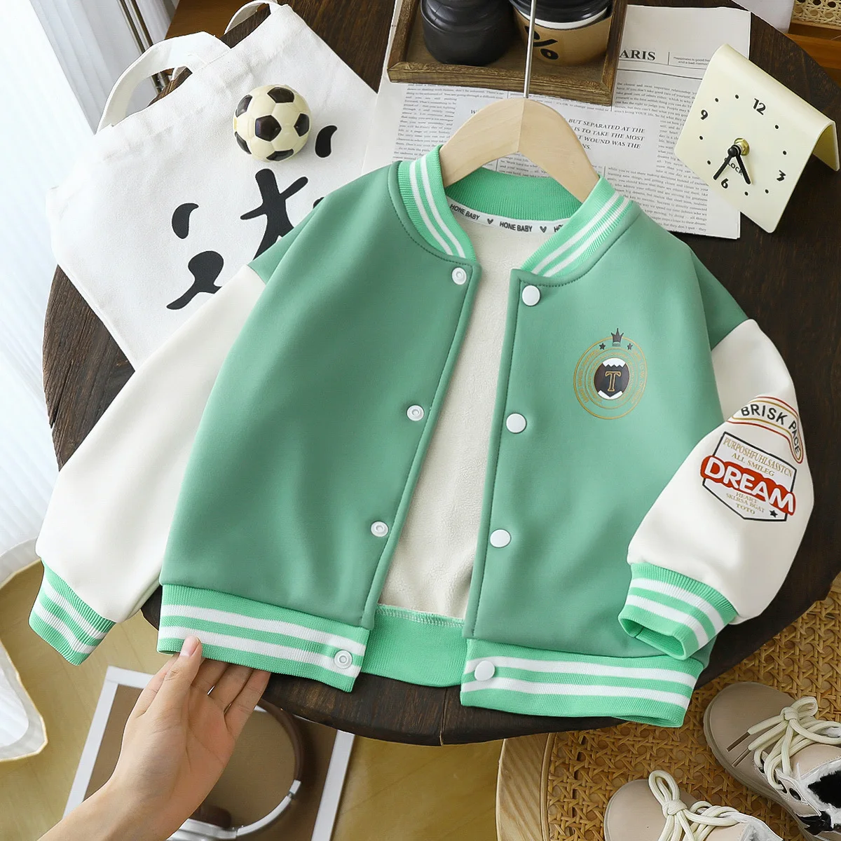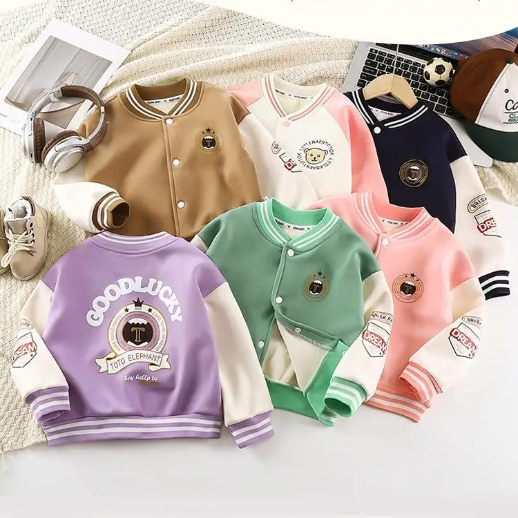 Autumn Winter Boys Girls Plus Thick Breathable Printed Milk Silk V-neck Casual Coat Korean Version Children Warm Baseball