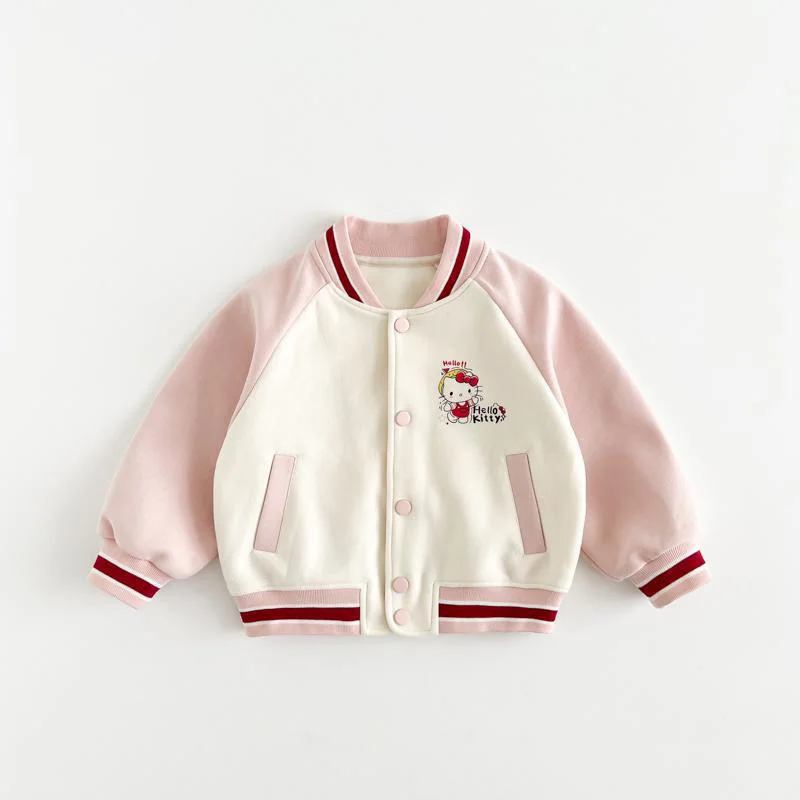 Autumn Girls Casual Cartoon Embroidered Polyester Filling Zipper Eco-friendly Baseball Jacket Clothes for Kids