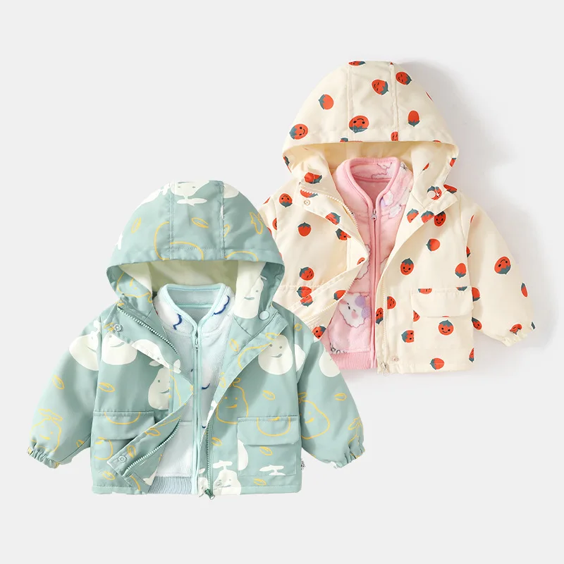 Customized Printed Boys' Girls' Children's Unisex Three-in-One Spring Autumn Outdoor Hooded Breathable 100% Polyester Zipper