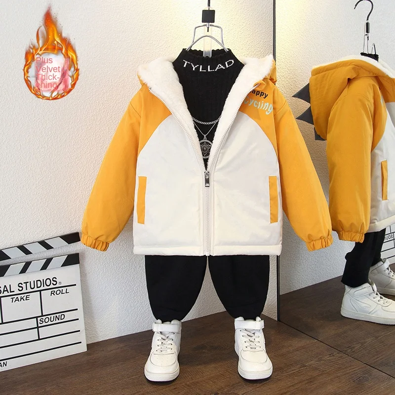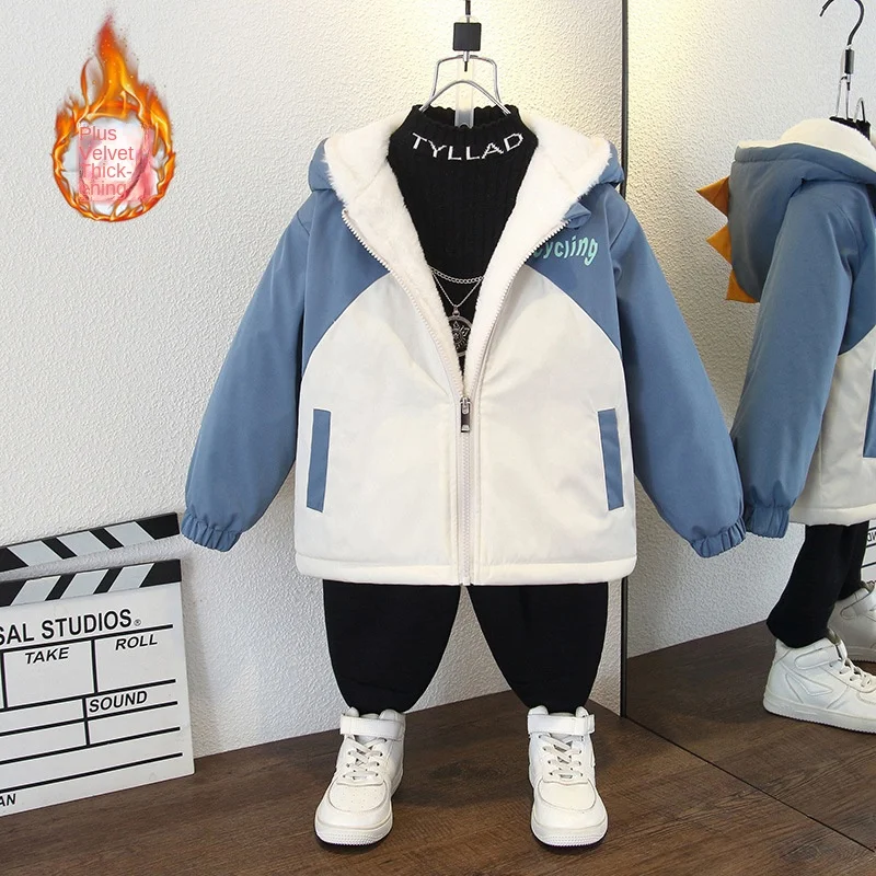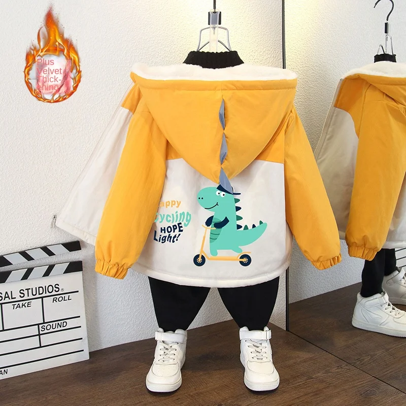 Customized Children's Boys' Casual Hooded Fleece-Lined Zipper Cartoon Pattern Winter Warm Thick Jacket Clothes for Kids