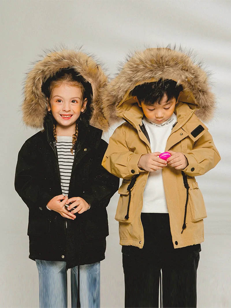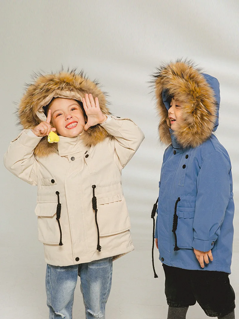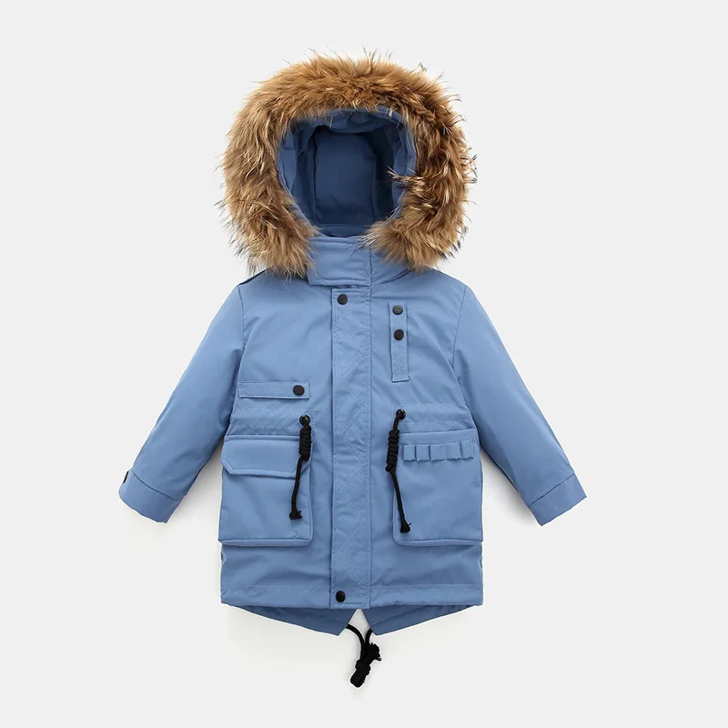 Baby Cute Thick Winter Hooded Zipper Coat Breathable Polyester V-neck Long Casual Clothes for Kids