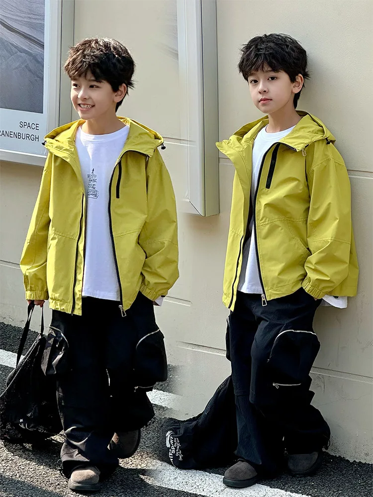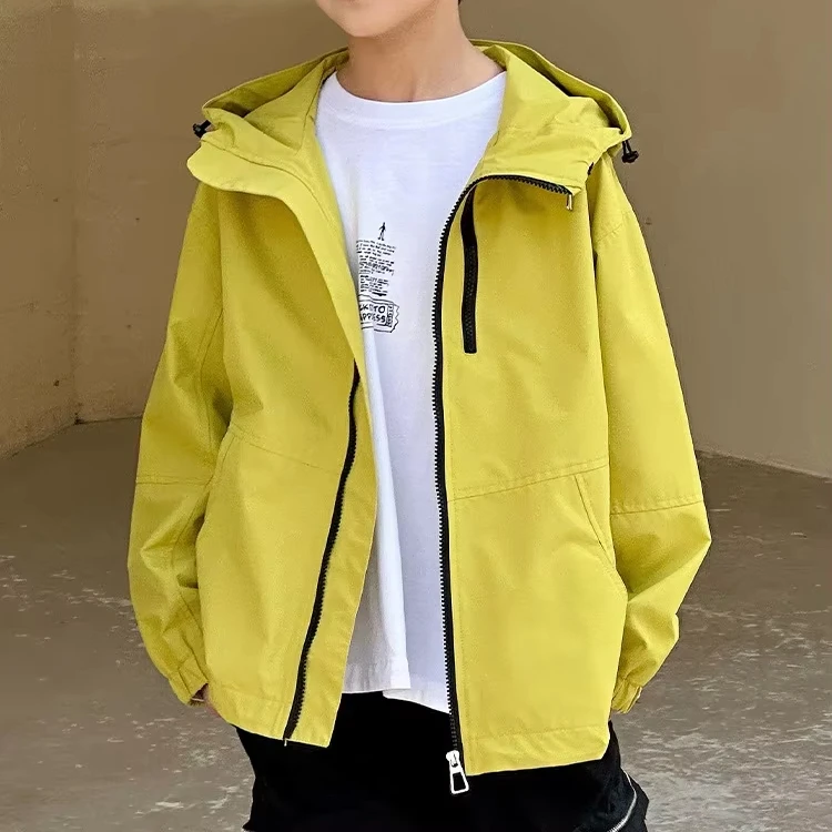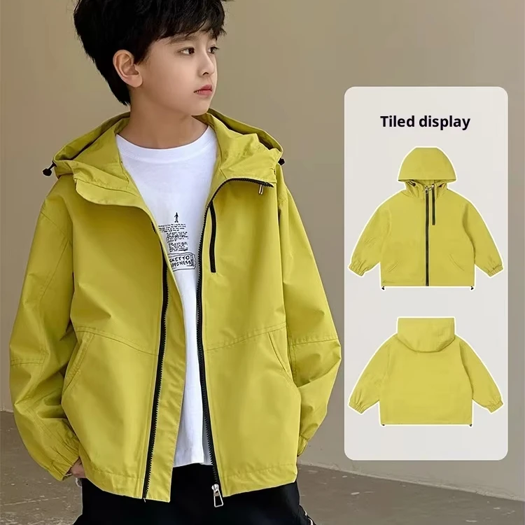 Customized Children and Boys Spring New Large Printed Polyester Short Jacket Korean Zipper Hooded Long Sleeve Clothes for Kids
