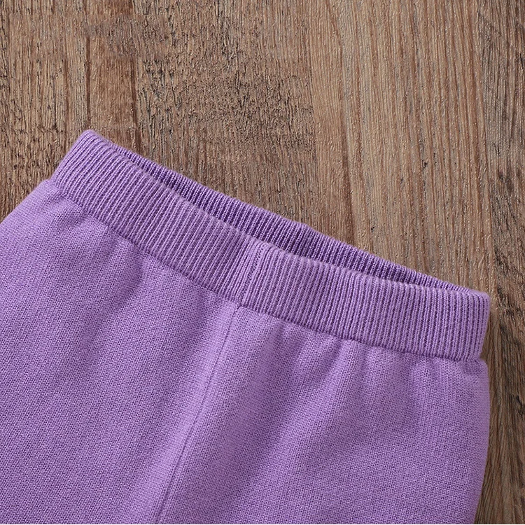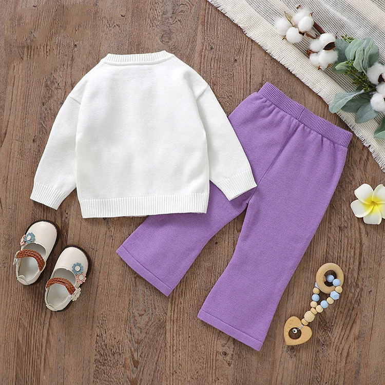 Customized Soft Knitted Lovely Baby Girls Solid Sweaters Coats Pants Clothing 2pcs Casual Girls' Sets Polyester/Cotton