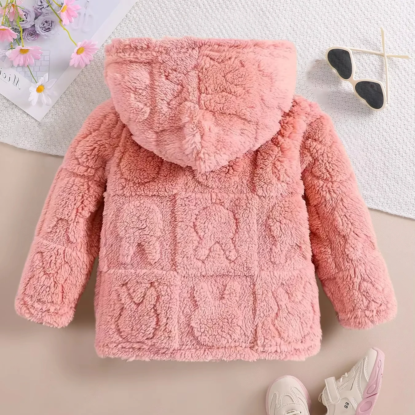 Customized Autumn Winter Warm Baby Girls Coat Girls' Shearling Hooded Jacket Thick Plush Fur Blazer Jacket Clothes for Kids