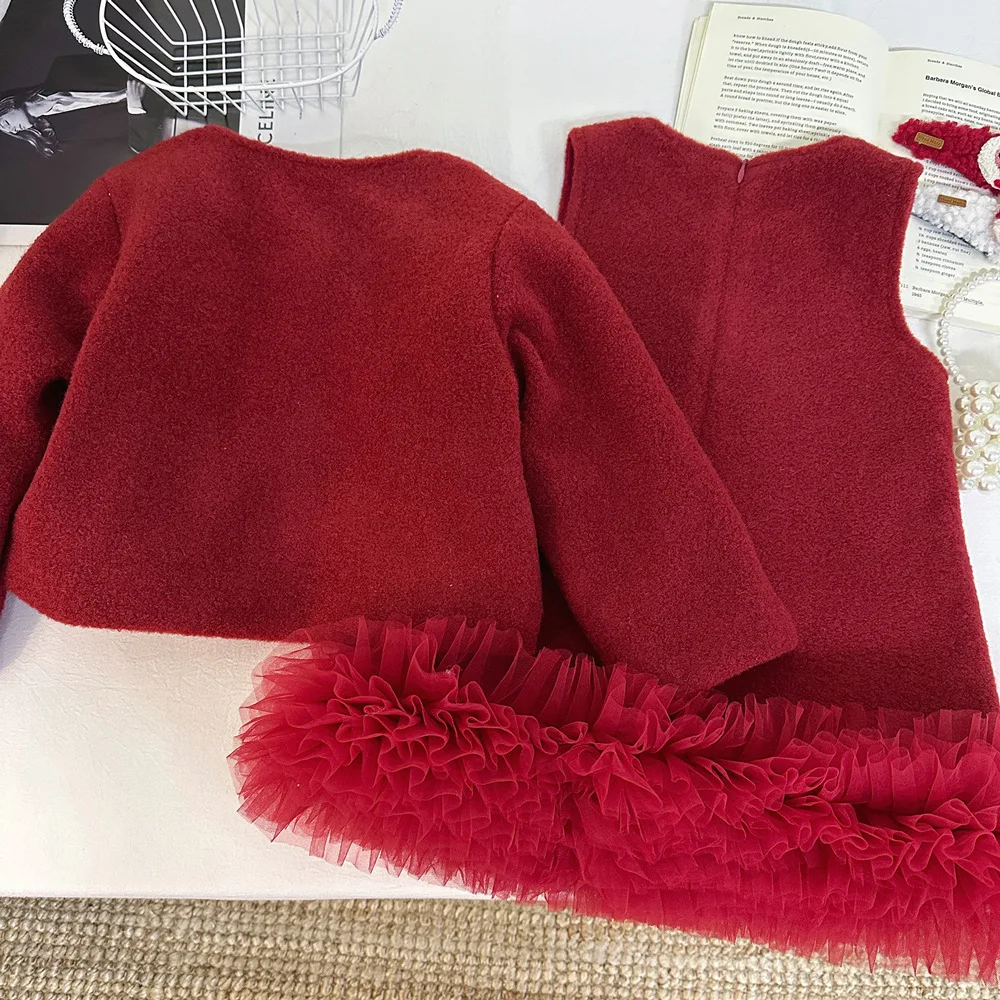 Girls' Tank Top Skirt Set Winter New Style Baby Girl's Stylish Plush Coat Solid Casual