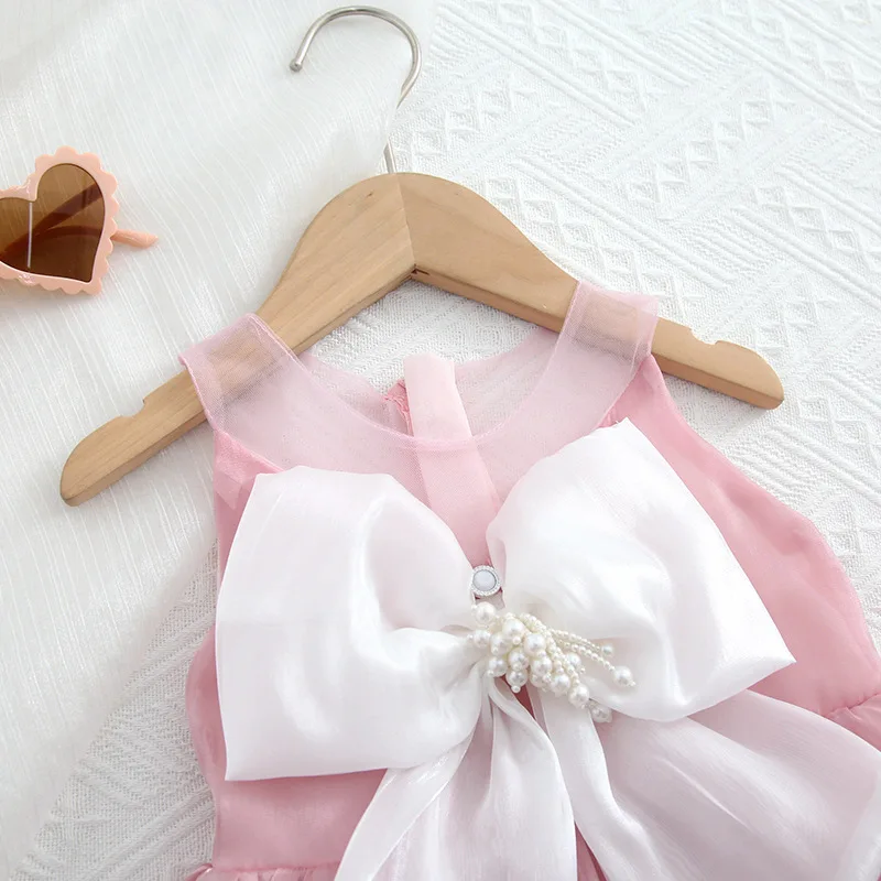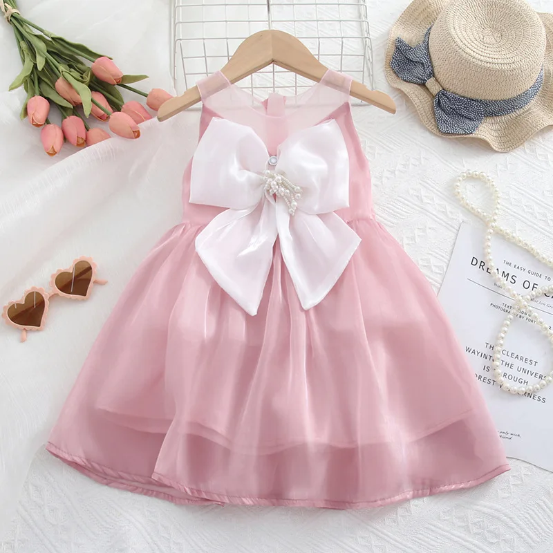 New Summer Woven Bow Cotton A-Line Dress for Baby Girls Sweet Princess Style Sleeveless Casual Parties ODM Service