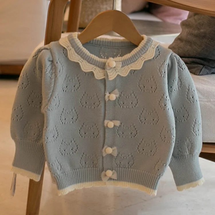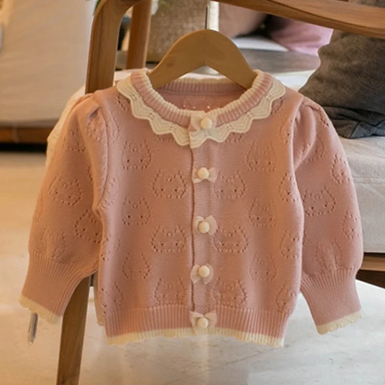 Children's Autumn Girls' Printed Casual Cartoon Baseball Uniform Sweater with Button Closure Long Sleeves Clothes for Kids