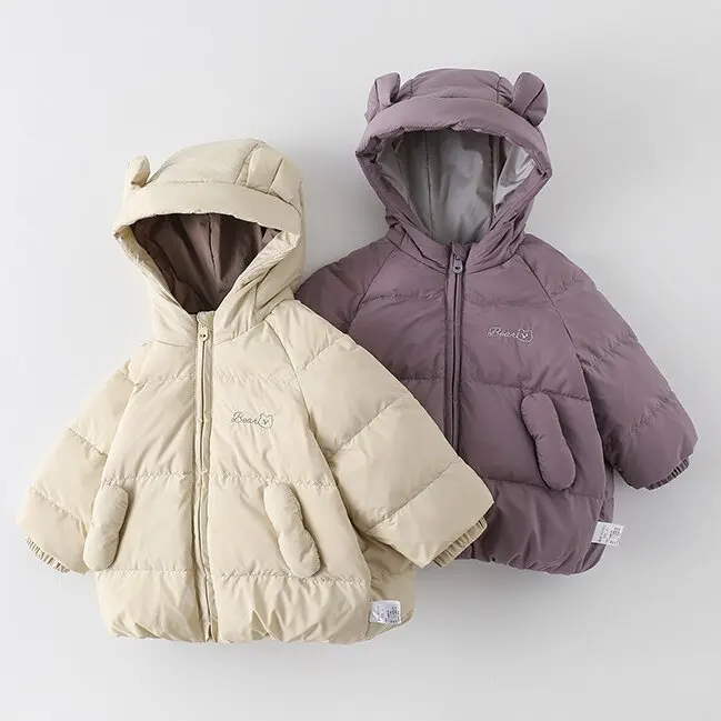 Customized Korean Style White Duck Down Casual Winter Jacket for Girls and Children New Baby Outwear Clothes for Kids