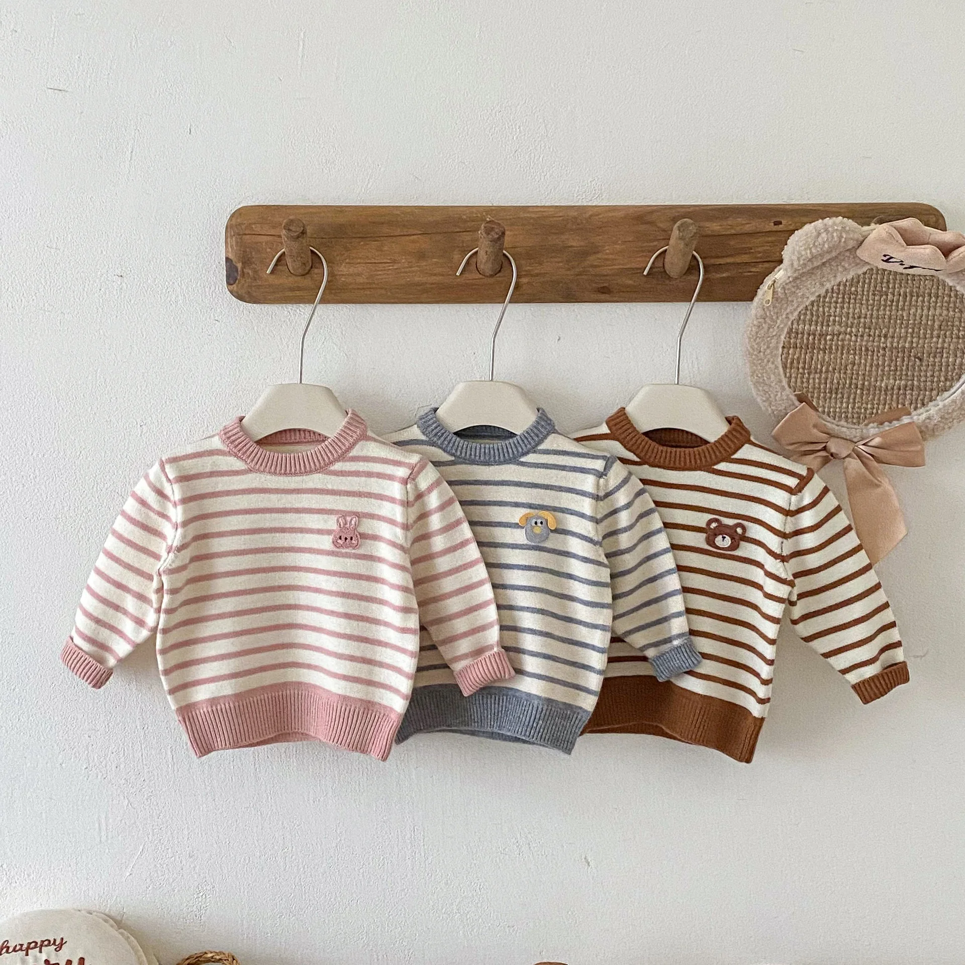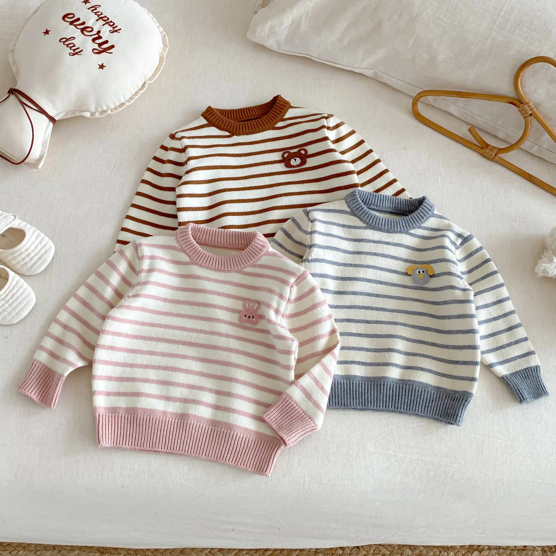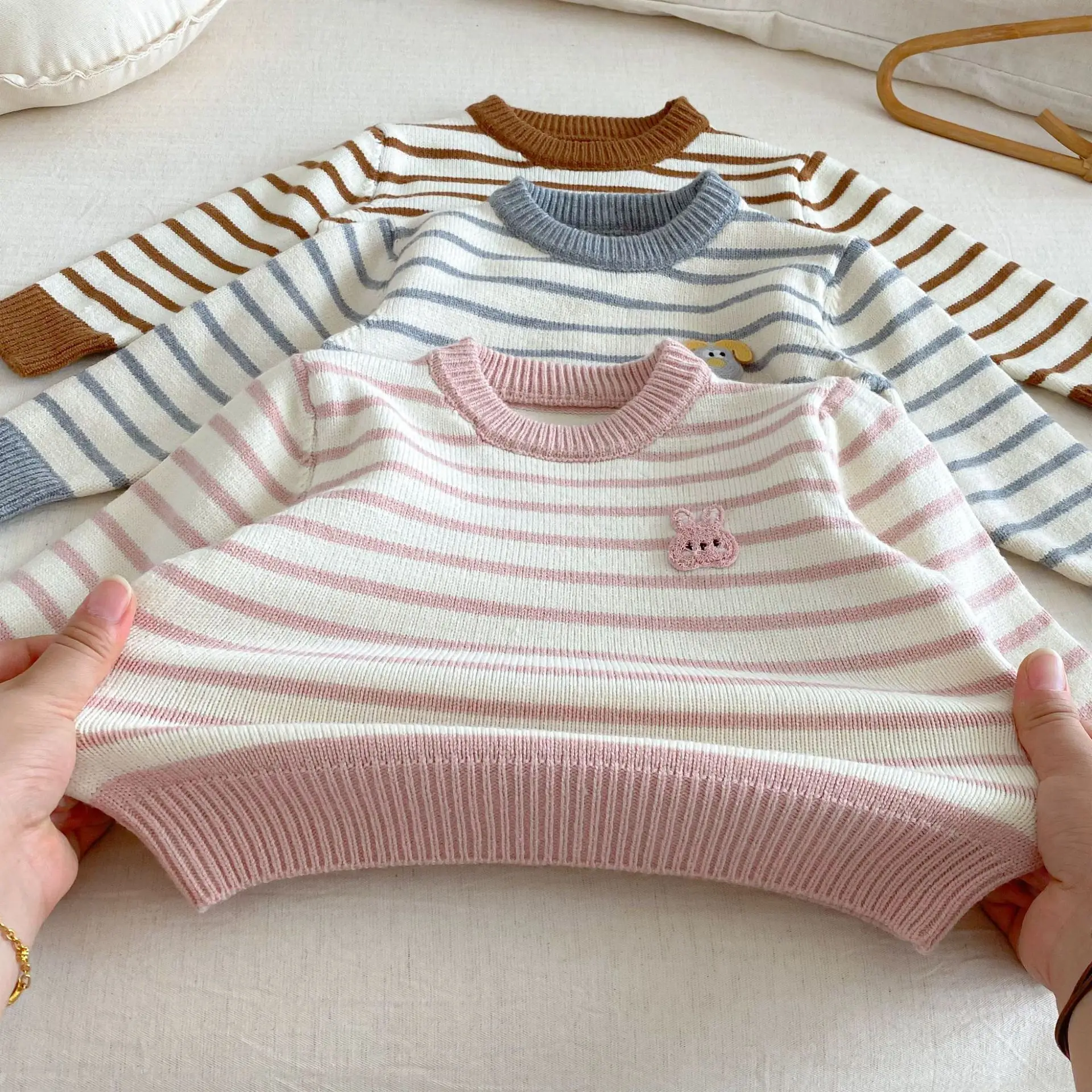 Customized Winter Kids Girls Sweater Children's Knitted Pullover Long Sleeves Striped Pullover Baby Knitwear Clothes for Kids