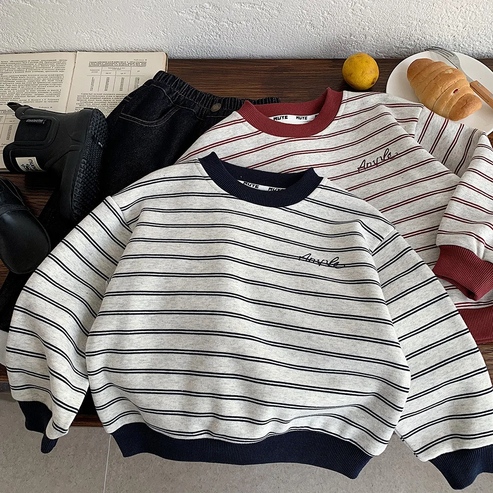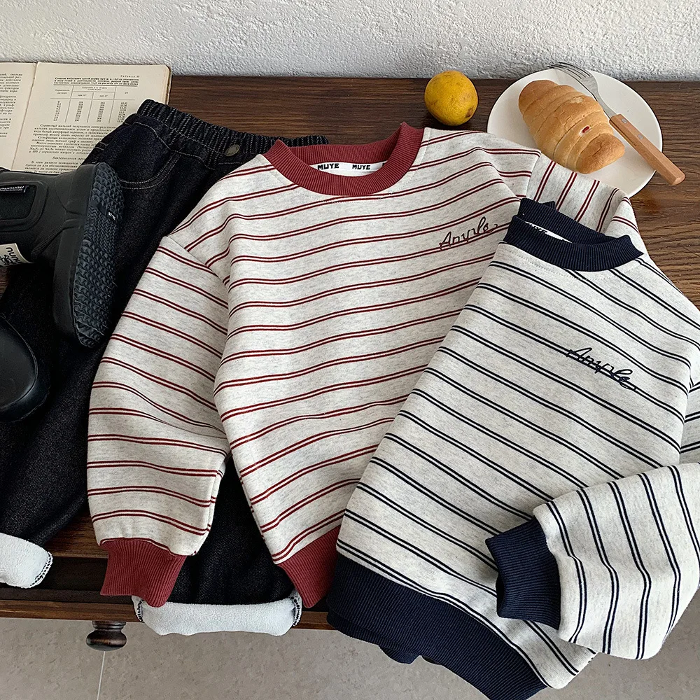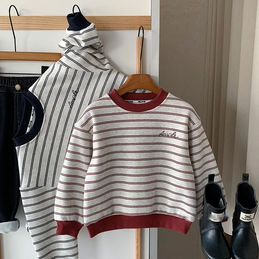 Customized Winter Fleece Sweatshirt for Children Unisex Korean Style Thickened Cotton Blend Casual Warm Clothes for Kids