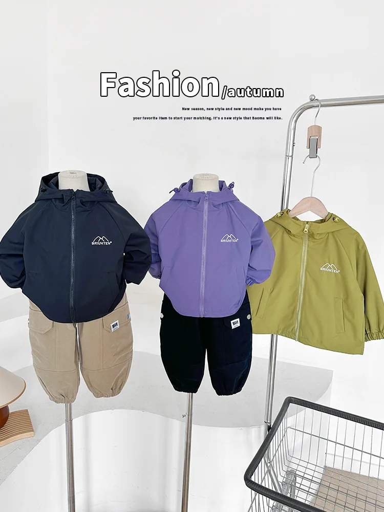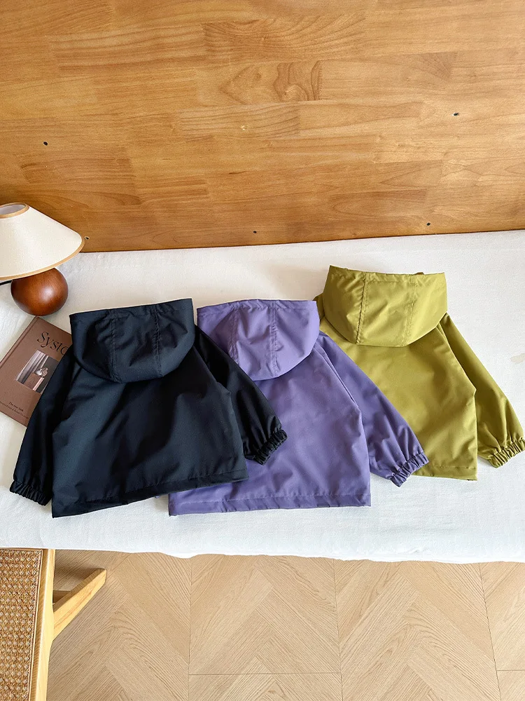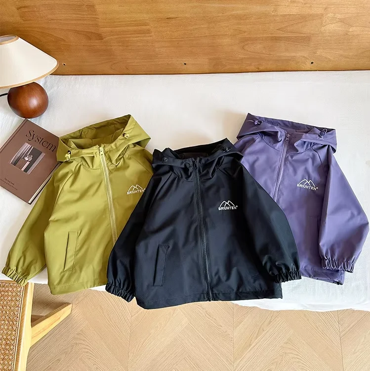 Custom Korean-style Embroidered Jacket Hooded Windbreaker Spring/Autumn Children Outerwear Boys Windproof Coats Clothes for Kids