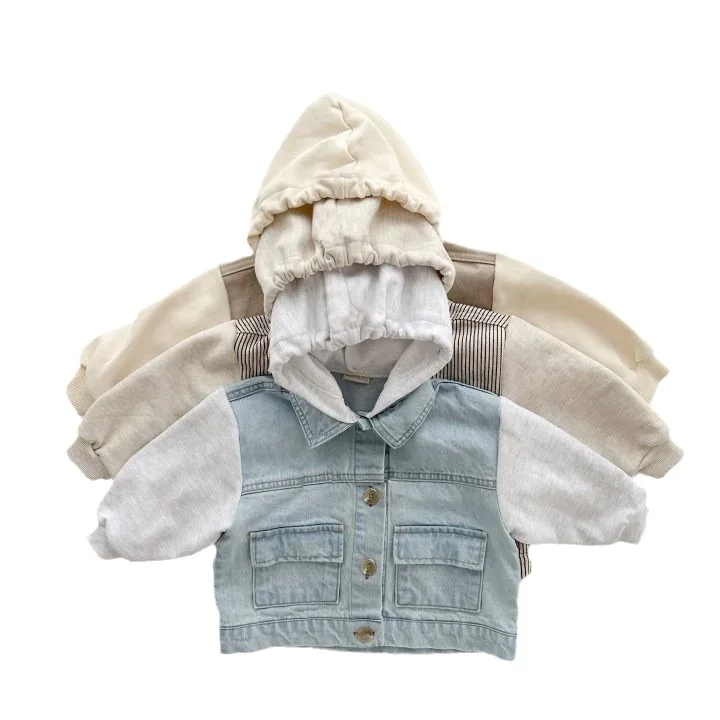 Custom Spring Autumn Toddler Boys Girls Cotton Denim Striped Hooded Top Coat Outfit Sweatshirt Baby Jacket Clothes for Kids