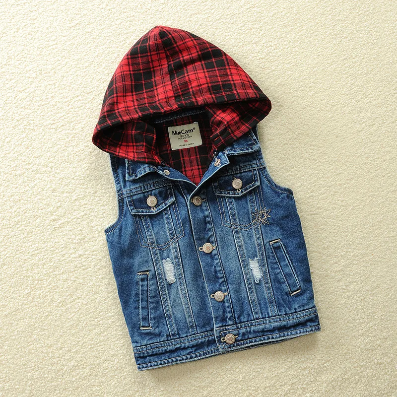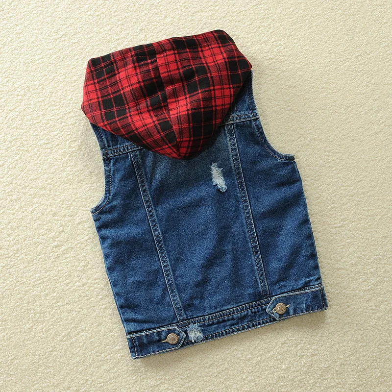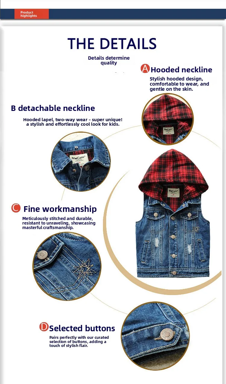 Custom New Spring Autumn Children Boys Casual Denim Cool Hooded Vest Clothes for Kids