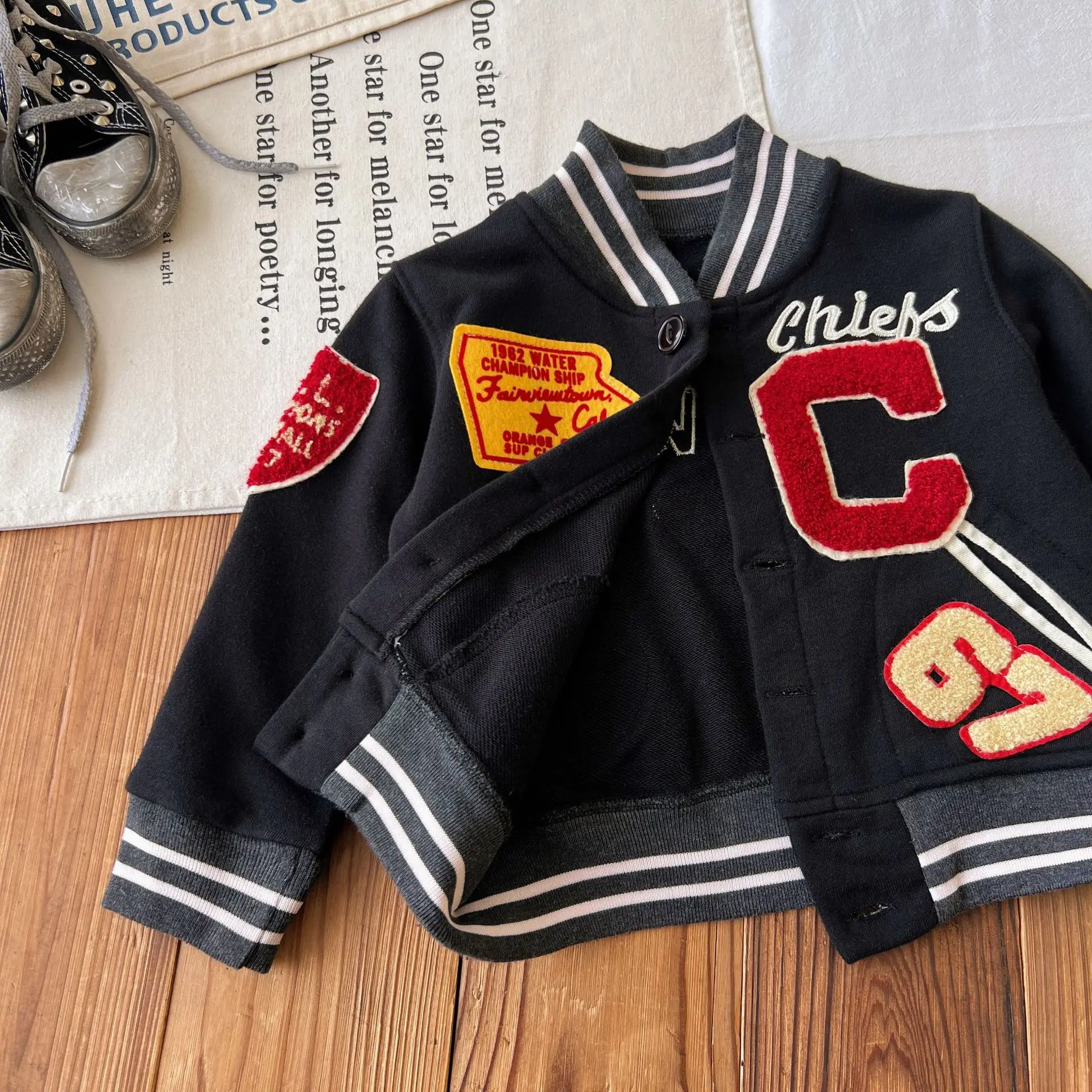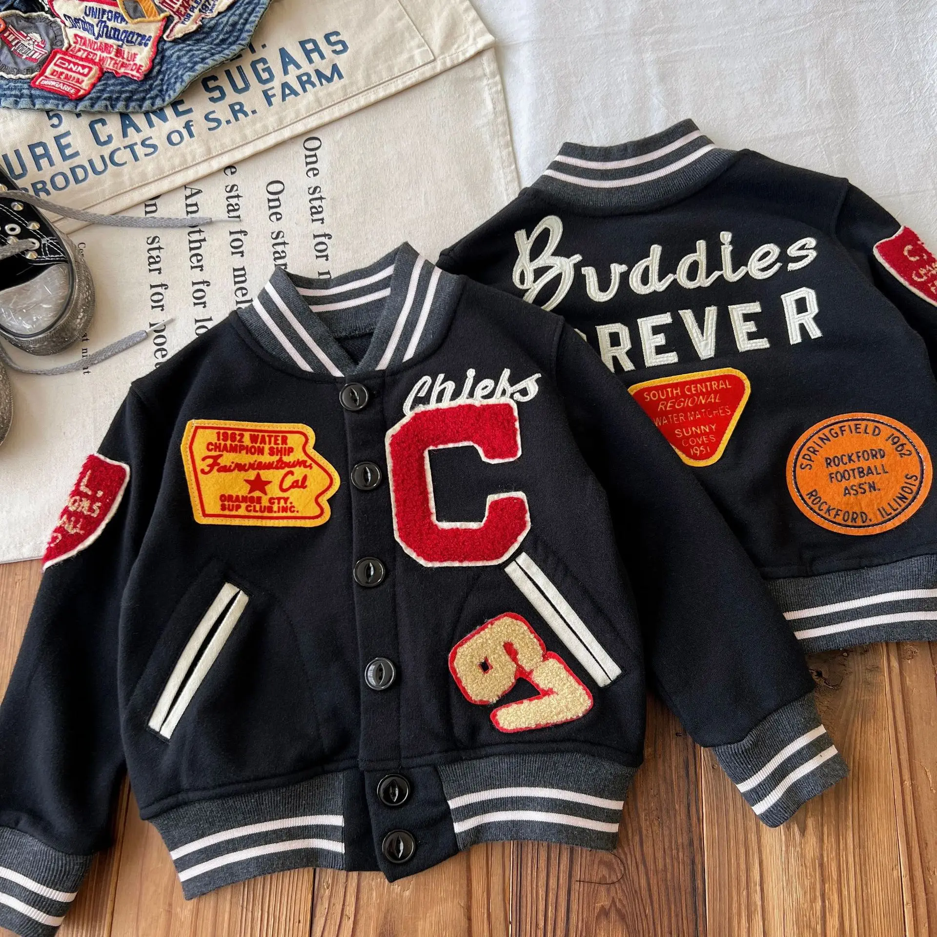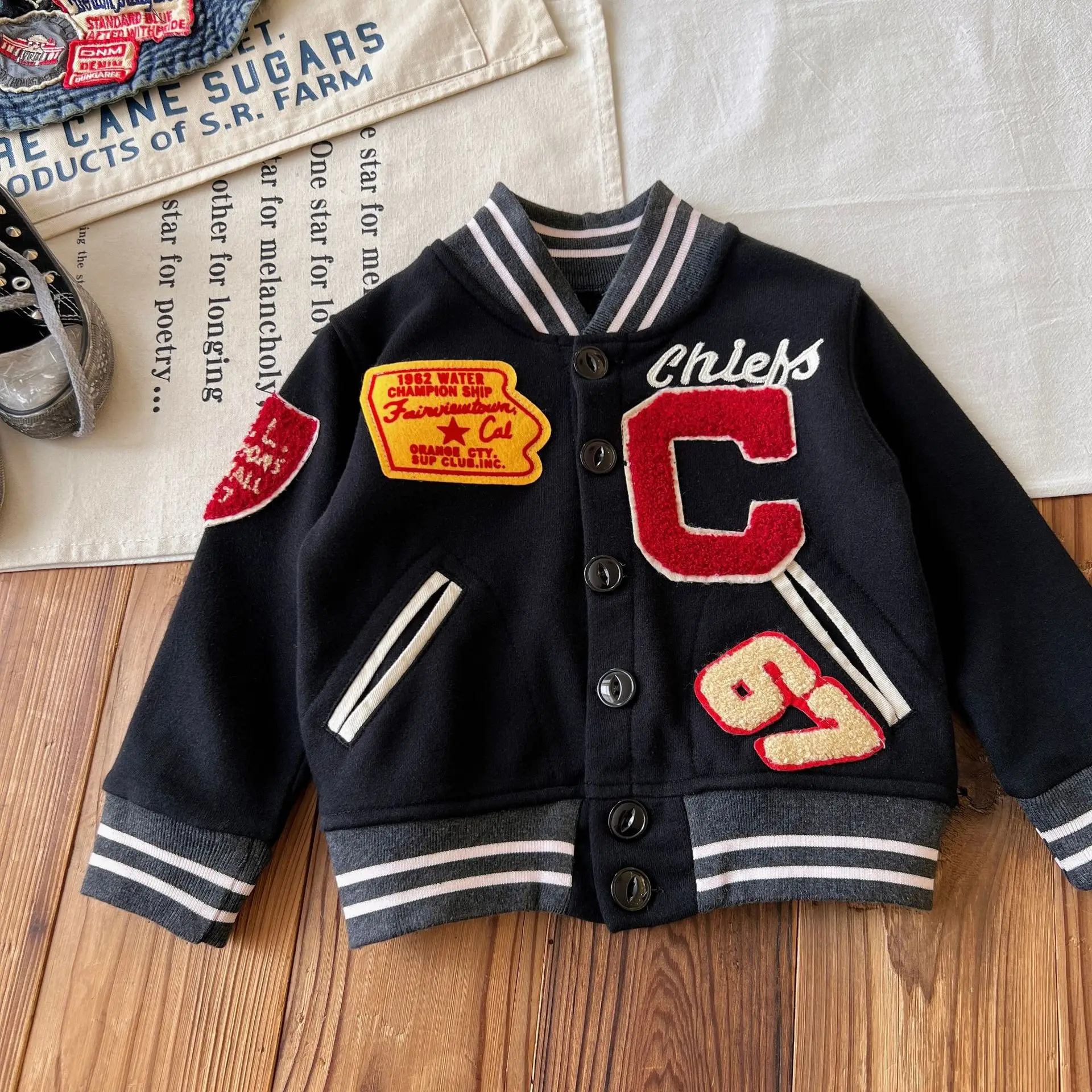 Customized Children's Badge Patch Baseball Jacket Cardigan Button Closure Boy and Girl Clothes for Kids