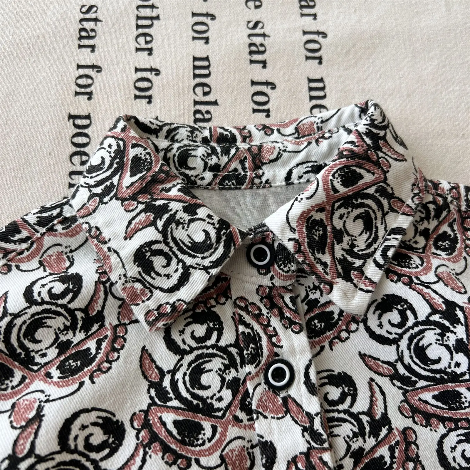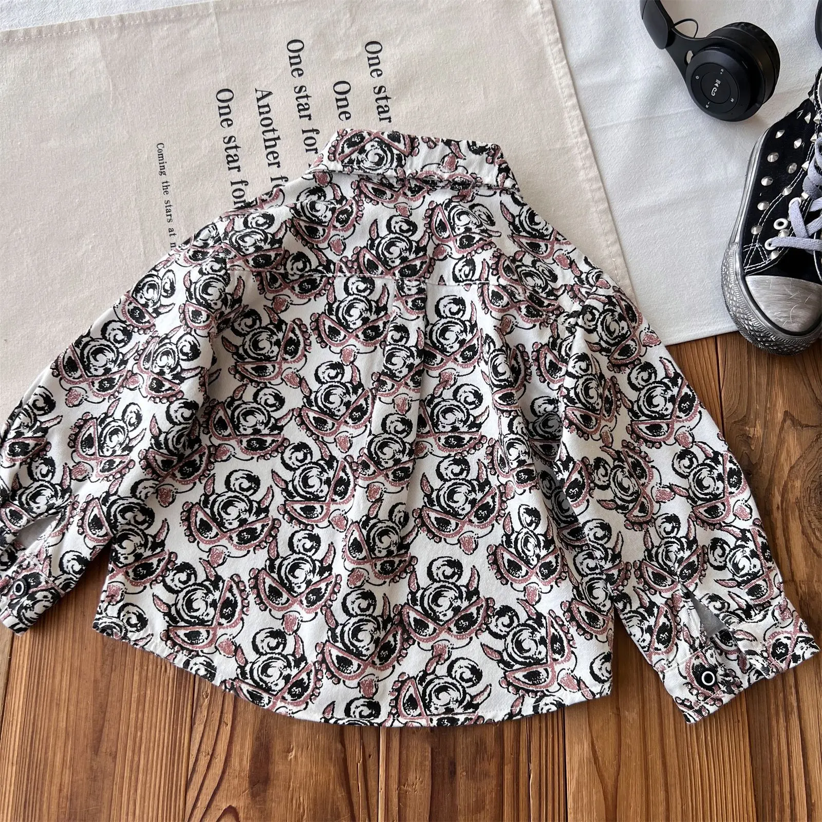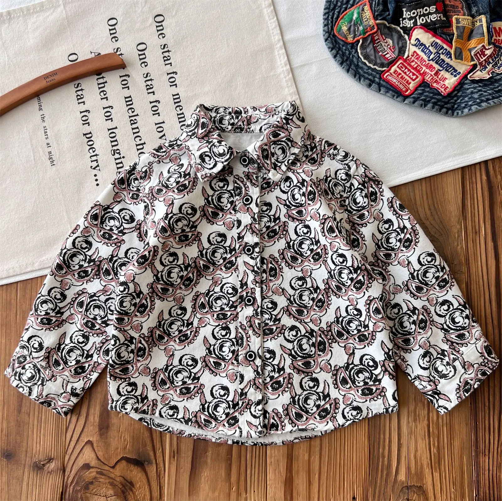 Customized Japanese-style Vintage Children's Black Full-printed Cartoon Shirt Clothes for Kids