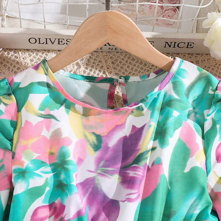 Custom Casual Style Summer Dresses for Girls O-Neck Long Sleeve Knee-Length for 8-12 Years Children Clothes for Kids