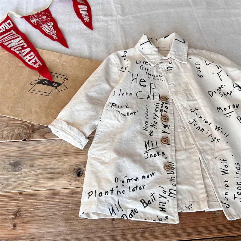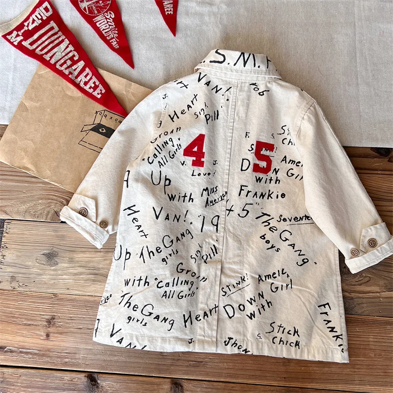 Customized Japanese-style Children's Clothing Vintage Graffiti Windbreaker with Fully Printed Letters Clothes for Kids
