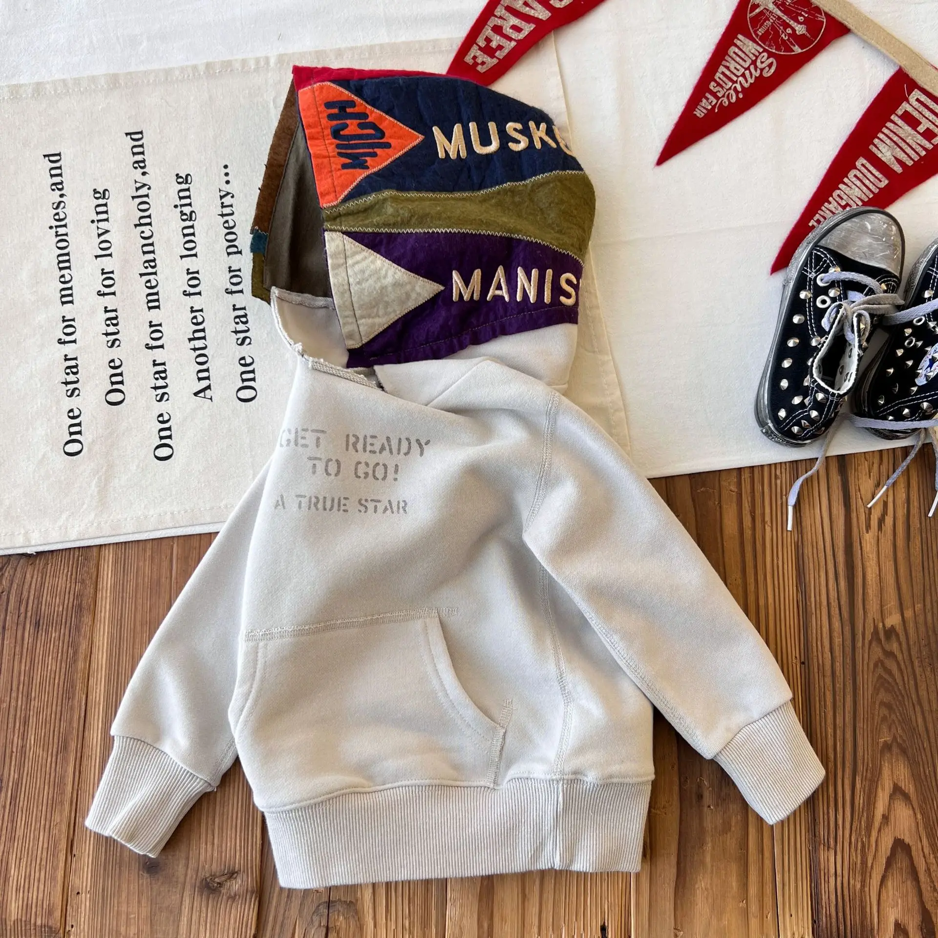 Custom Autumn Japanese-style Vintage Children's Color Matching Hooded Sweatshirt with a Large Brim Jue Version Clothes for Kids