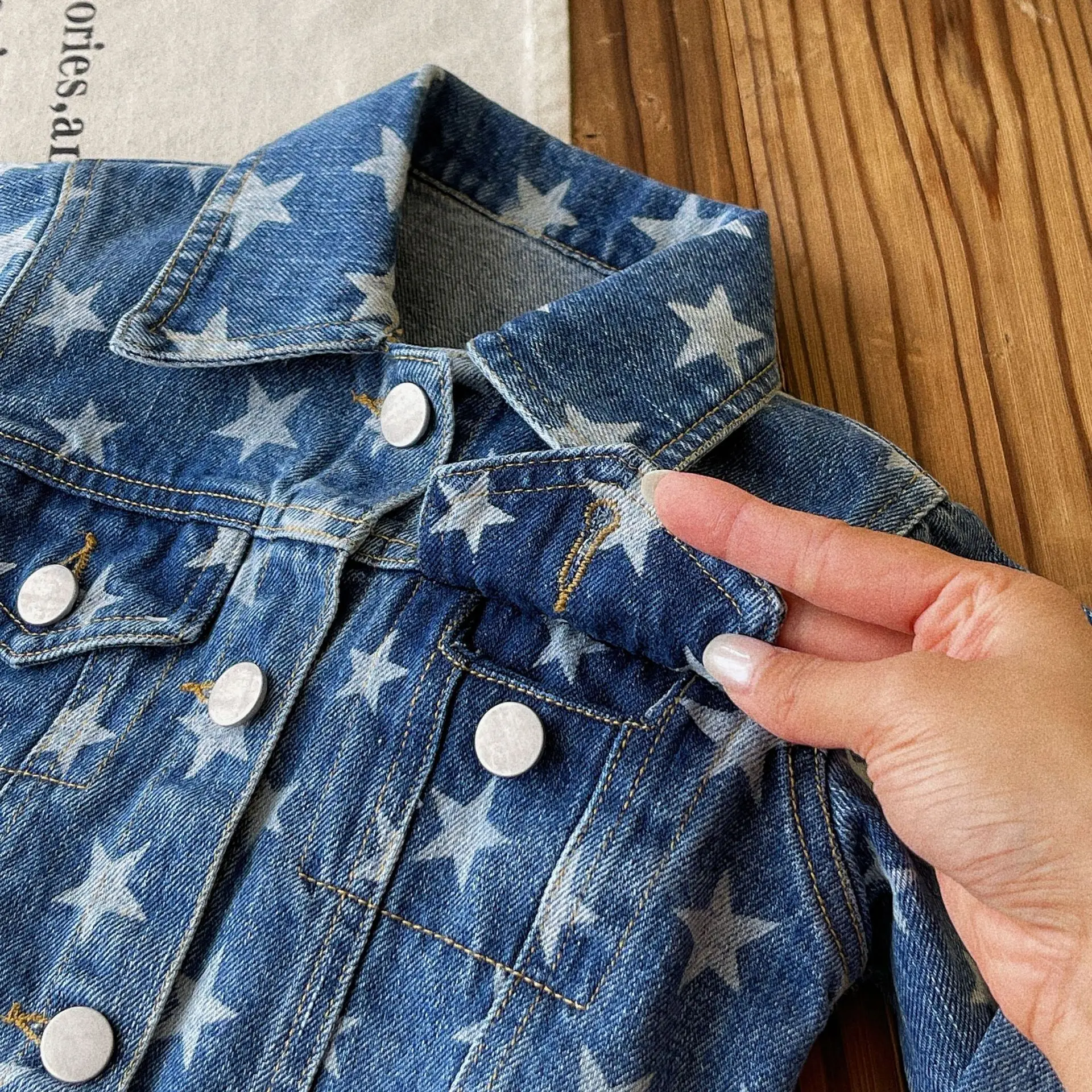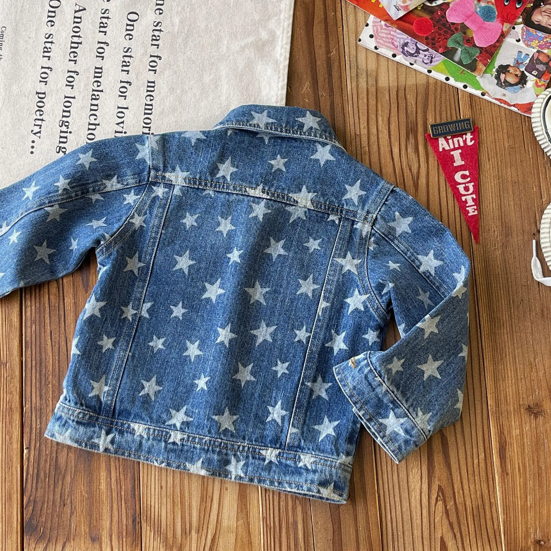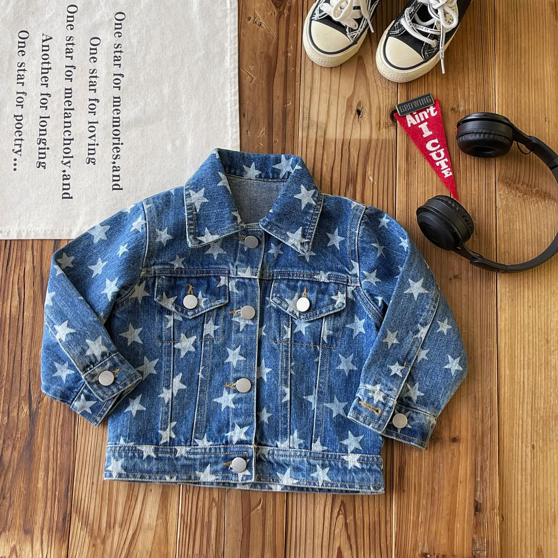 Custom Japanese-style Vintage Children's Spring and Autumn Coat Denim Jacket Fully Printed with Stars Clothes for Kids
