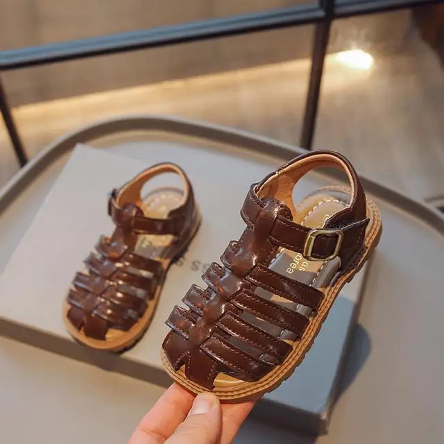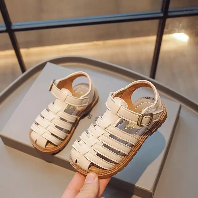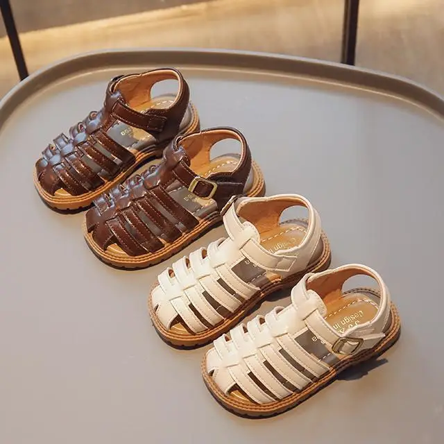 Outside Leather Slides Custom logo Korean Shoes Children Sandals