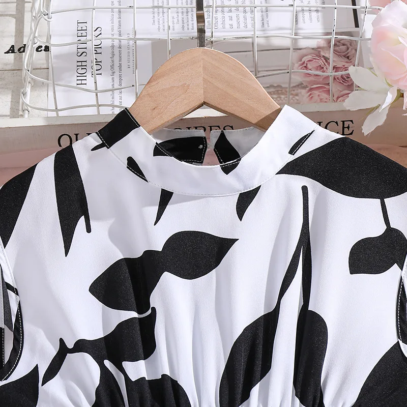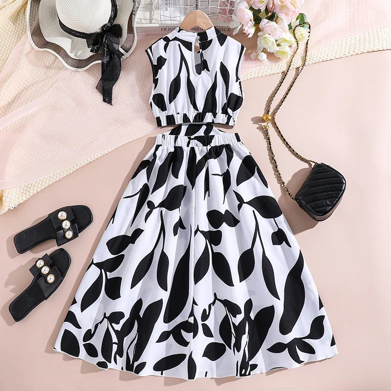 2026 Summer Kids Clothing Holiday Teenage Clothes Chic Print Halter-waist Princess Girls Dresses