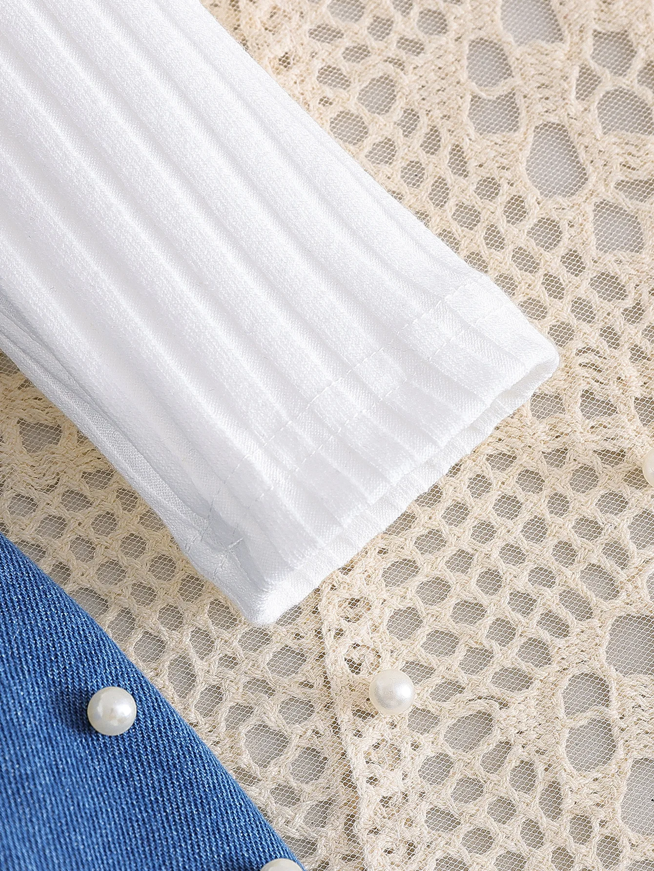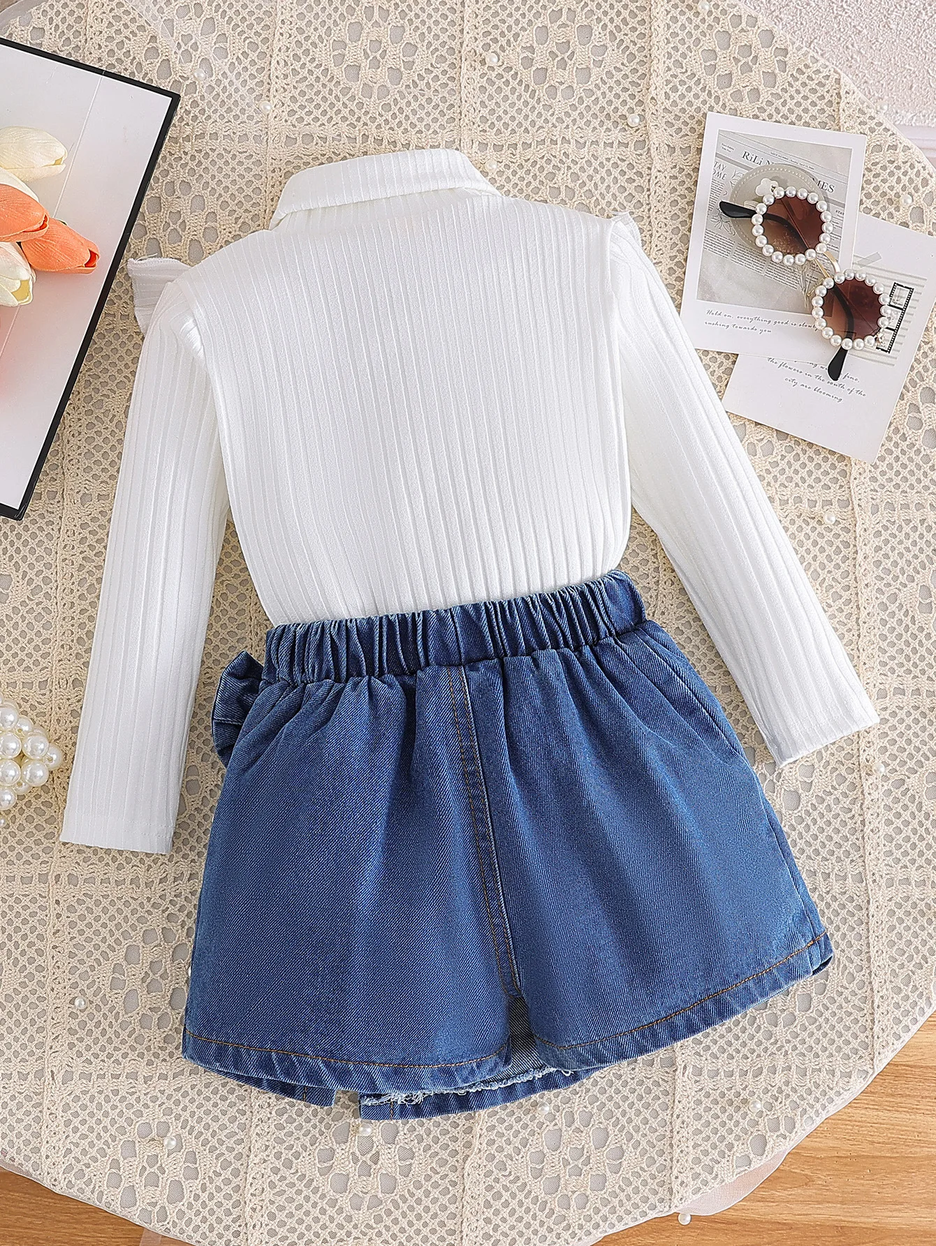 2026 New Spring Girls Outfits High Neck Lotus Leaf Knitted Top Denim Beaded Culottes Kids Wholesale Clothing