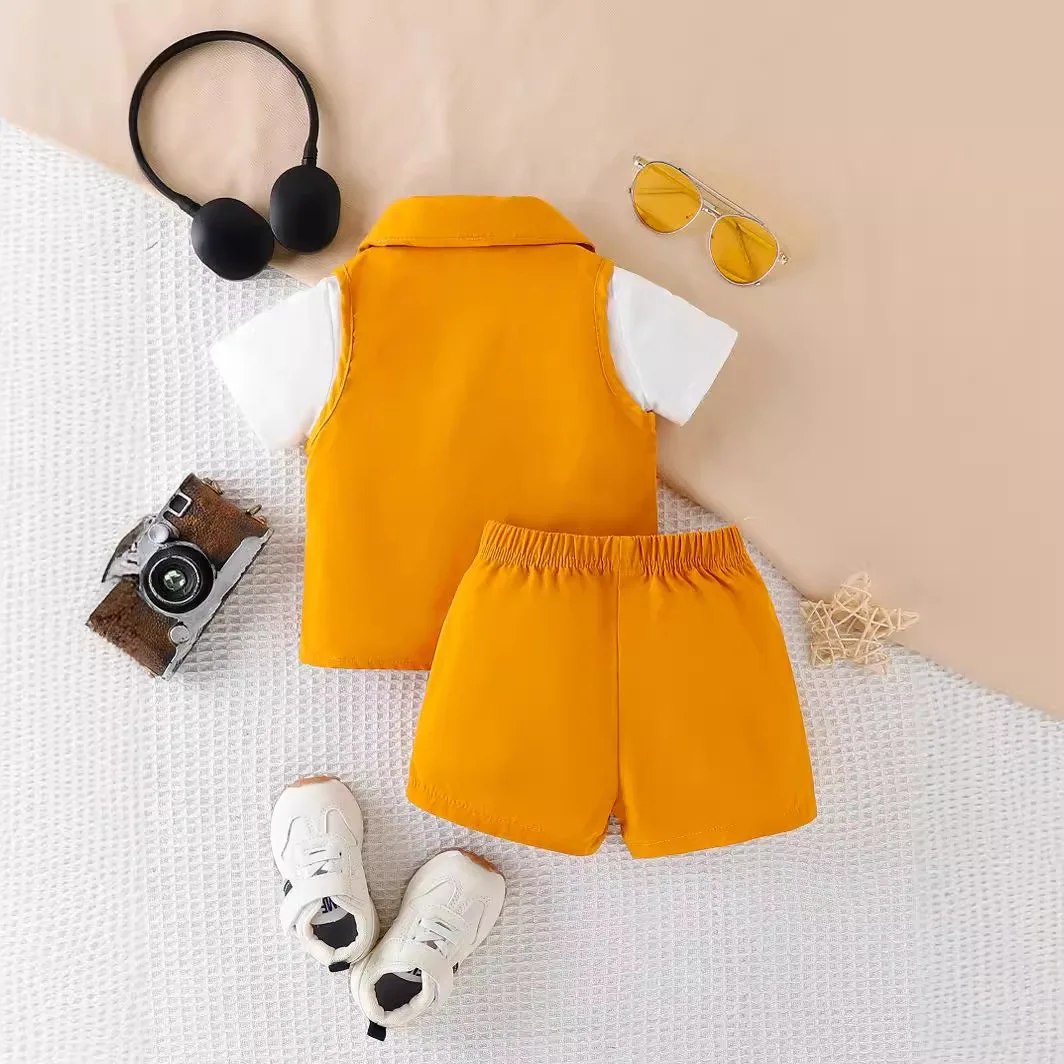 2026 Hot Sale Toddler Outfits Sports Style Suit Sleeveless Waistcoat Short Sleeve T-shirt Casual Shorts Baby Boys Clothes Sets
