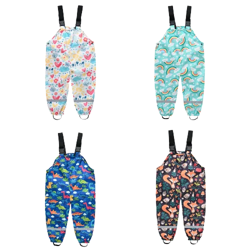 Toddler Kids Boys Girls Rain Overalls Dinosaur Print Dungarees Windproof Waterproof Mud Jumpsuit Clothes Outdoor Bib Trousers