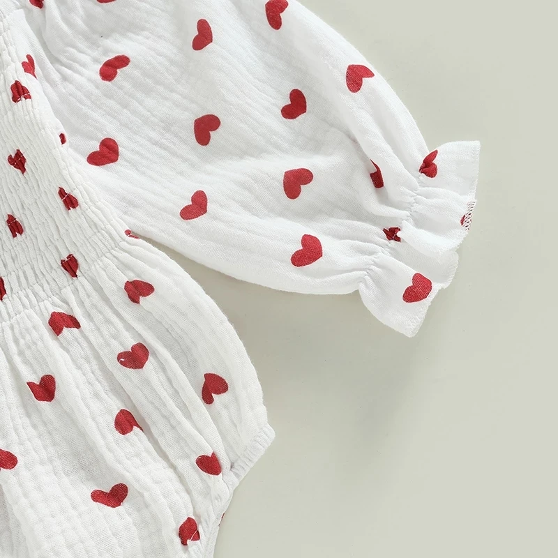 2023 Fashion Baby Girls Cute Romper 2pcs Heart Printed Ruffles Long Sleeve Jumpsuits With Hairband Infant Bodysuit