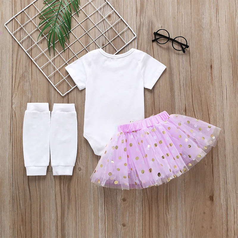 Fashion Cute Pretty Bunny Print Romper pink Golden Bow Gauze Skirt Body Set Easter Newborn Baby Clothes With Socks