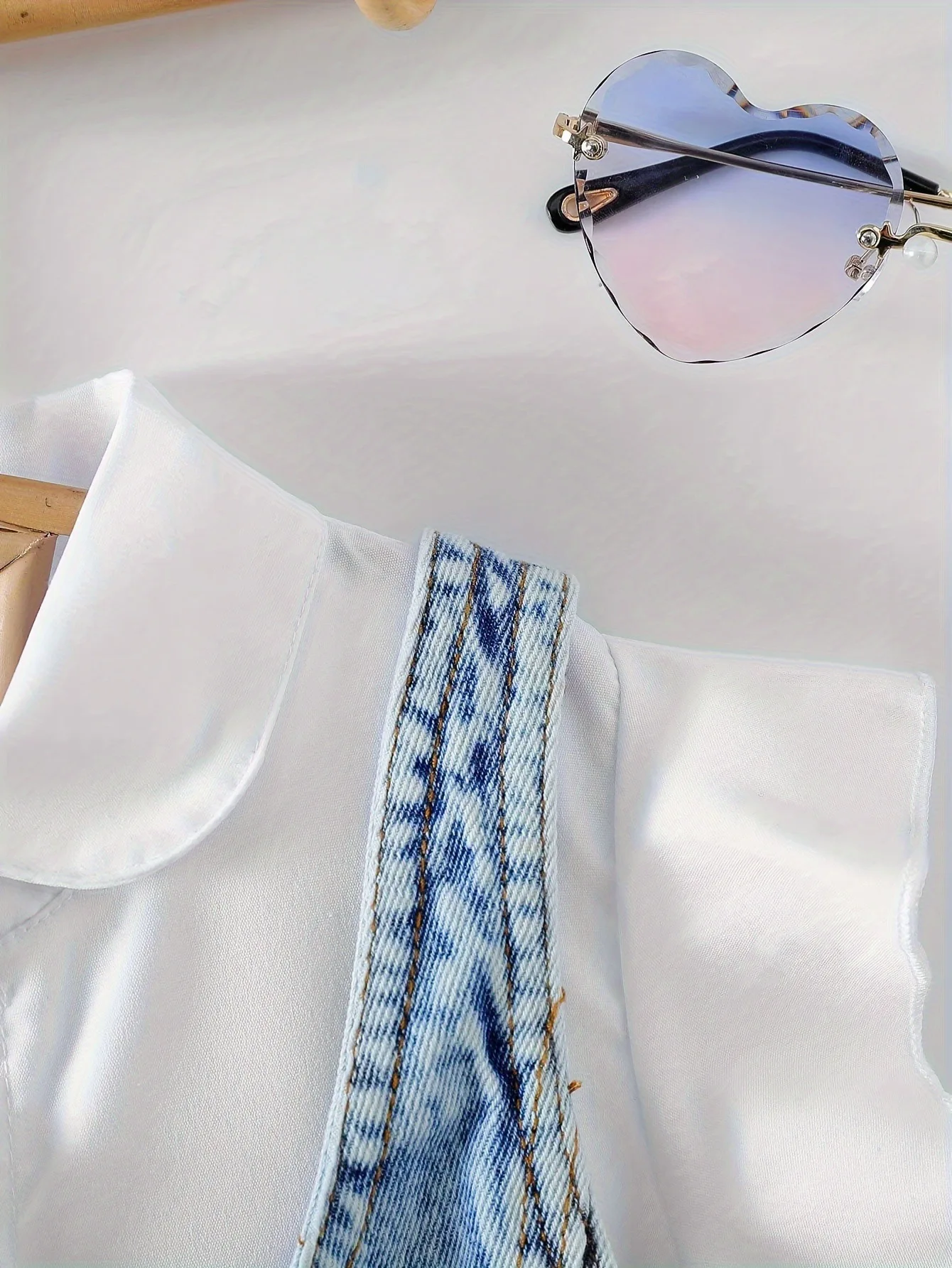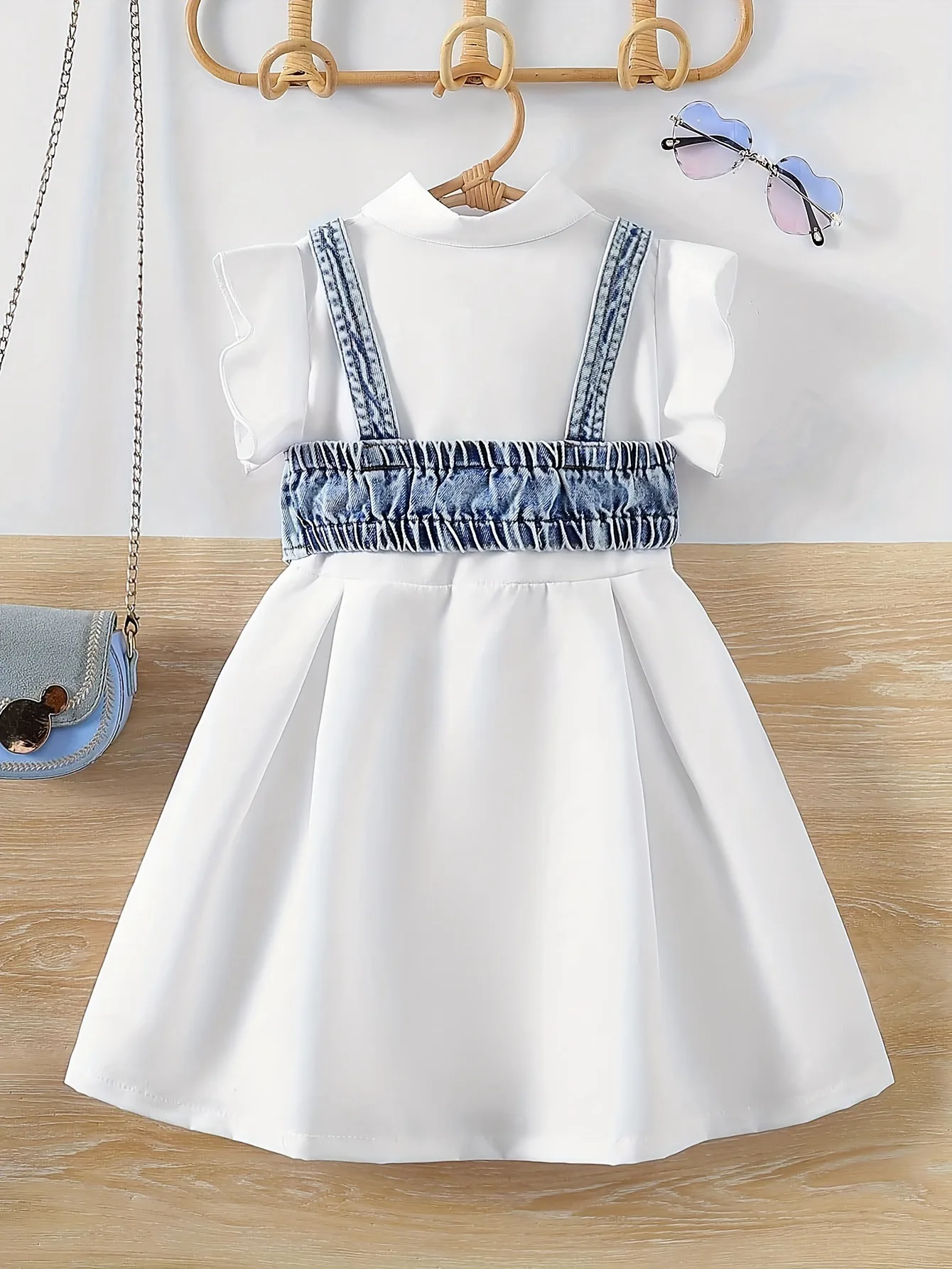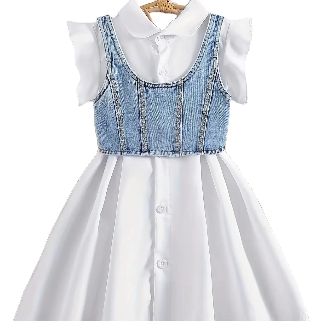 2026 New Design Fashion Kids Clothing Solid Color Lotus Sleeve Shirt Skirt Denim Vest Two-piece Girls Dresses Set
