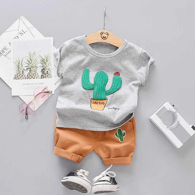 2019 Cute Fashion Comfortable Good Quality Cactus Print Round Collar Short Sleeves Children Clothes Kids Wear Bangladesh
