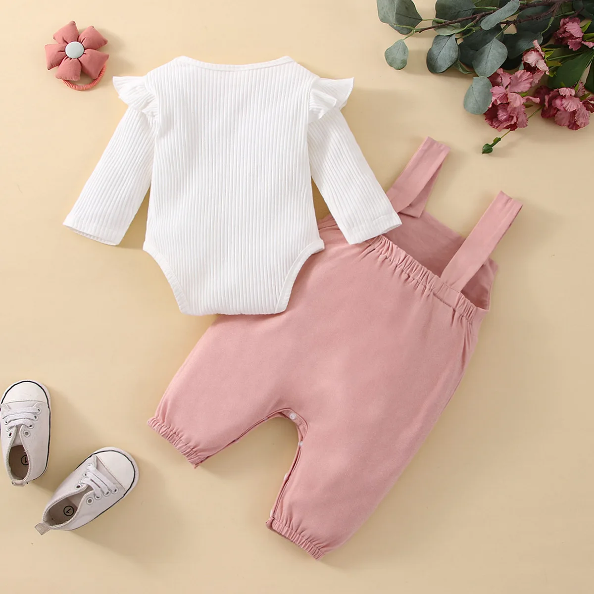 2023 Newborn Infant Girls Clothes Long Sleeve Ruffle Romper Eyelash Overalls Set Spring Autumn Cute 2 Pcs Baby Outfits