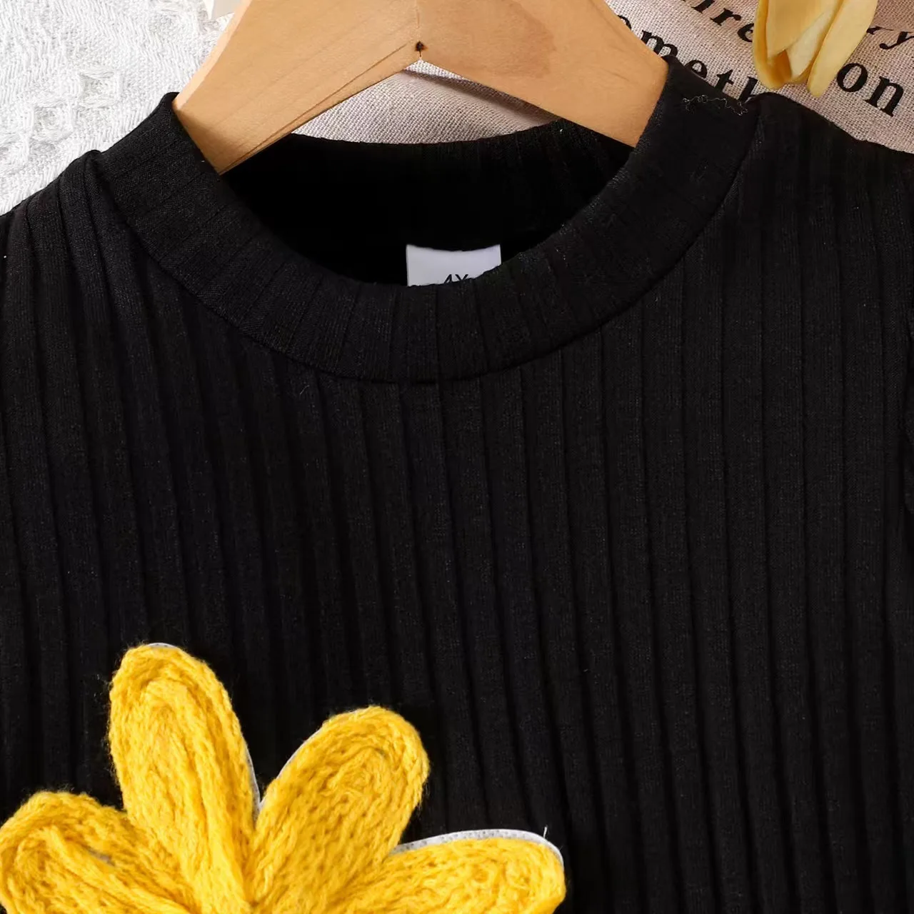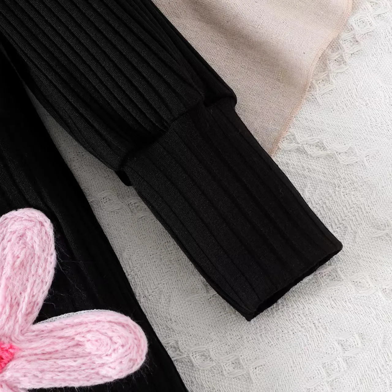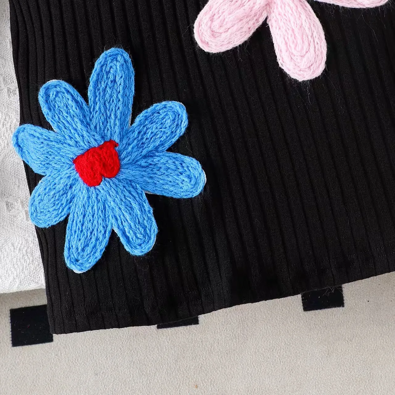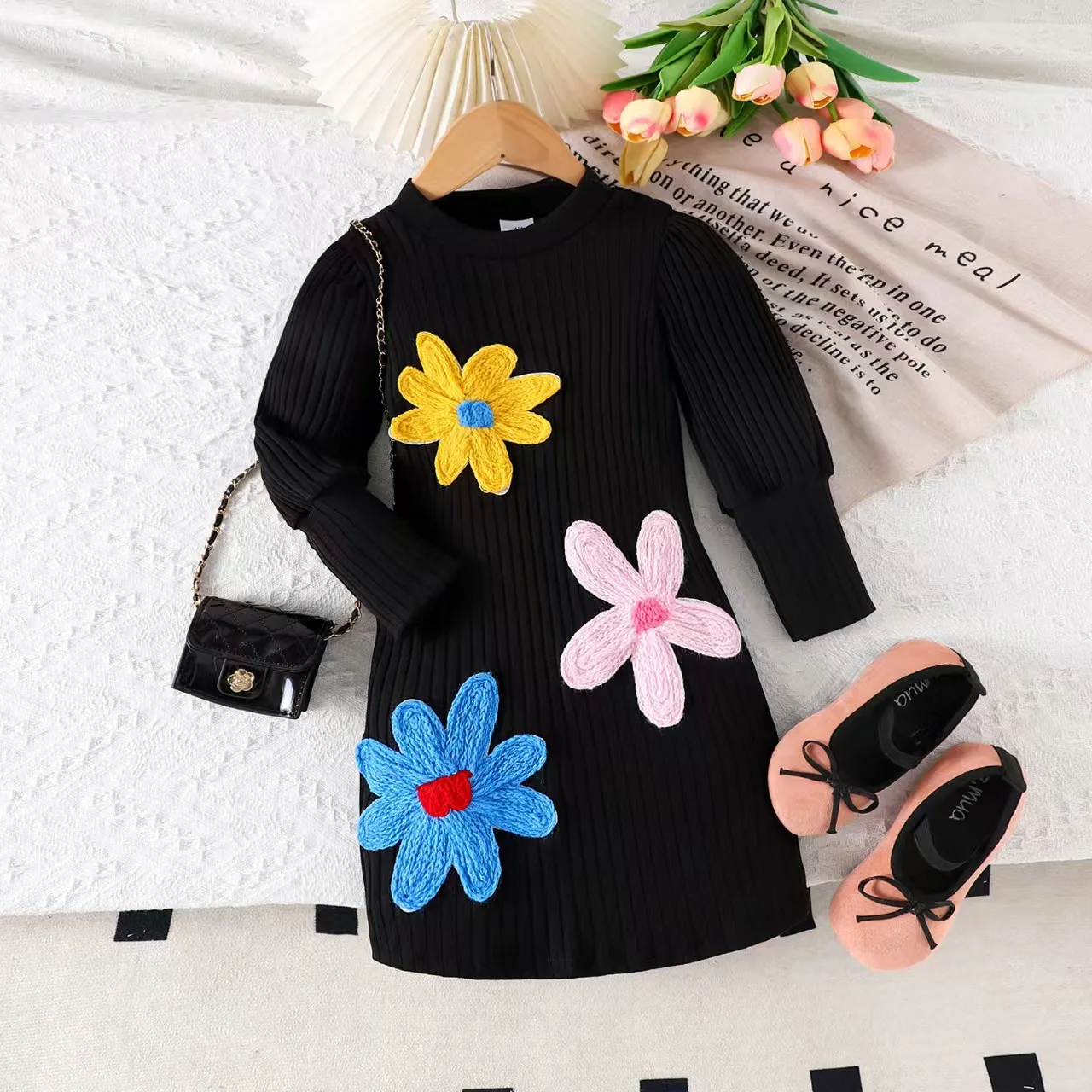 2026 Spring Boutique Kids Dress Colorful Flower Embroidered Knitted Long-Sleeved Girls Casual Fashion Dresses Peter Pan Collar