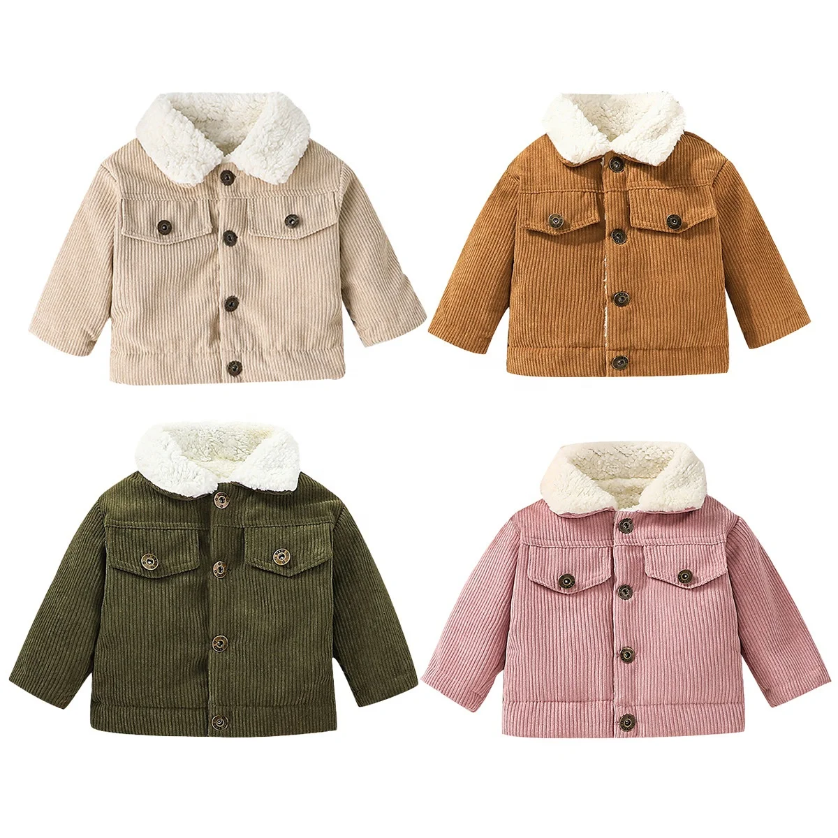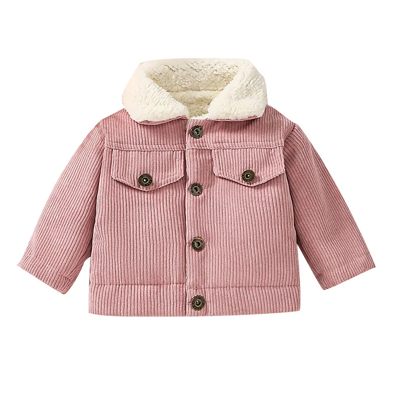 2023 Infant Winter Jackets Thicken Warm Corduroy Boys Girls Fleece Outwear Solid Color Lapel Toddler Kids Clothes Baby Coat