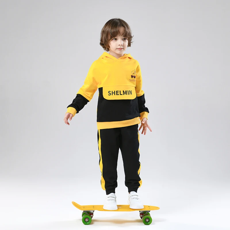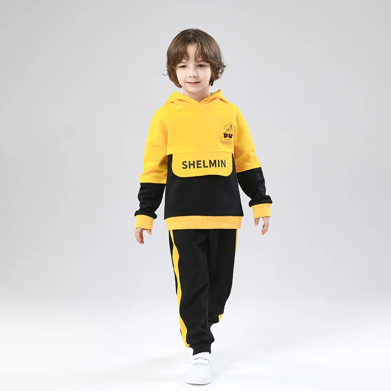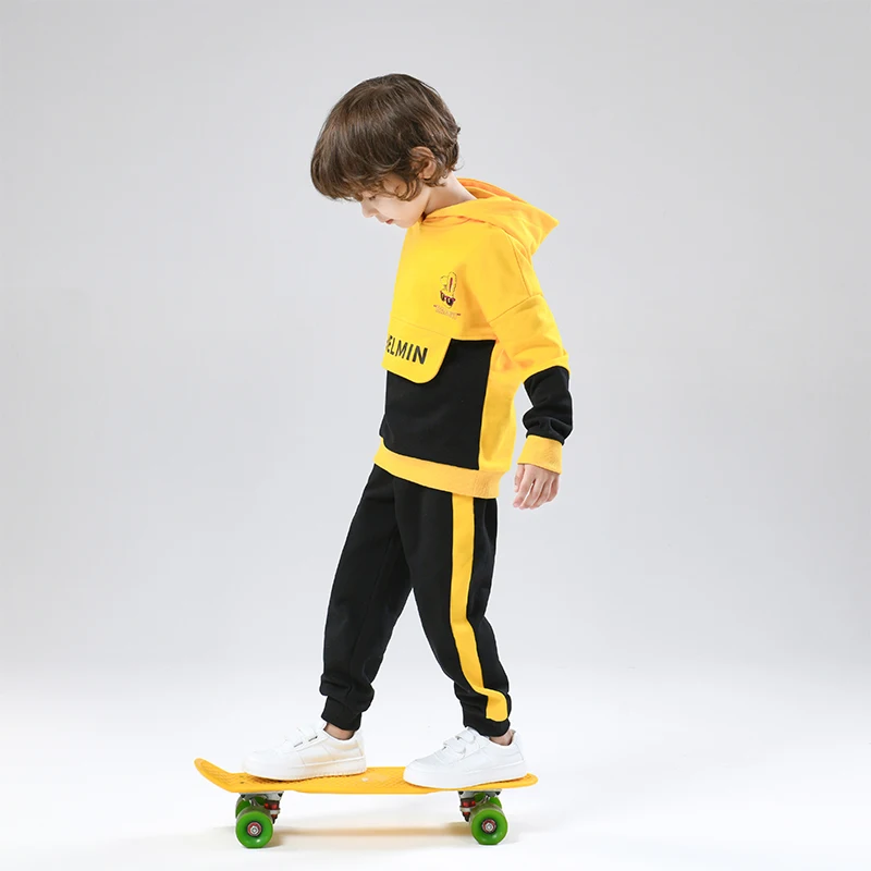 High Quality Casual Long Sleeve Boy Sweatshirt Children's Letter Printed Two Color Splicing Hooded Design