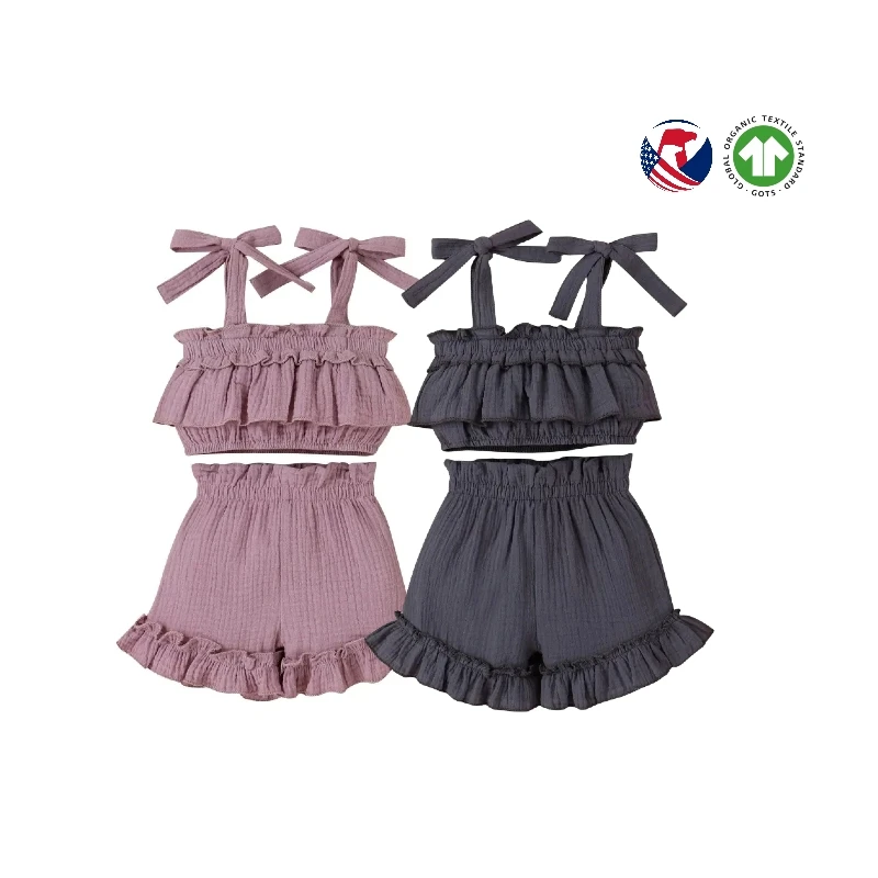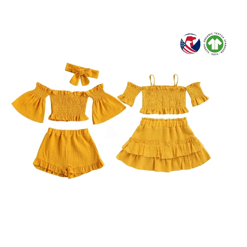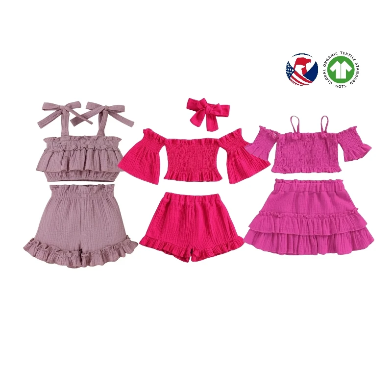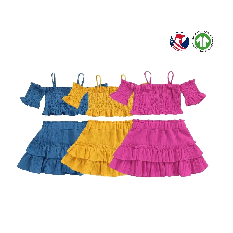 Summer Casual 3-Piece off Shoulder Blank Clothes Sets for Toddler Girls