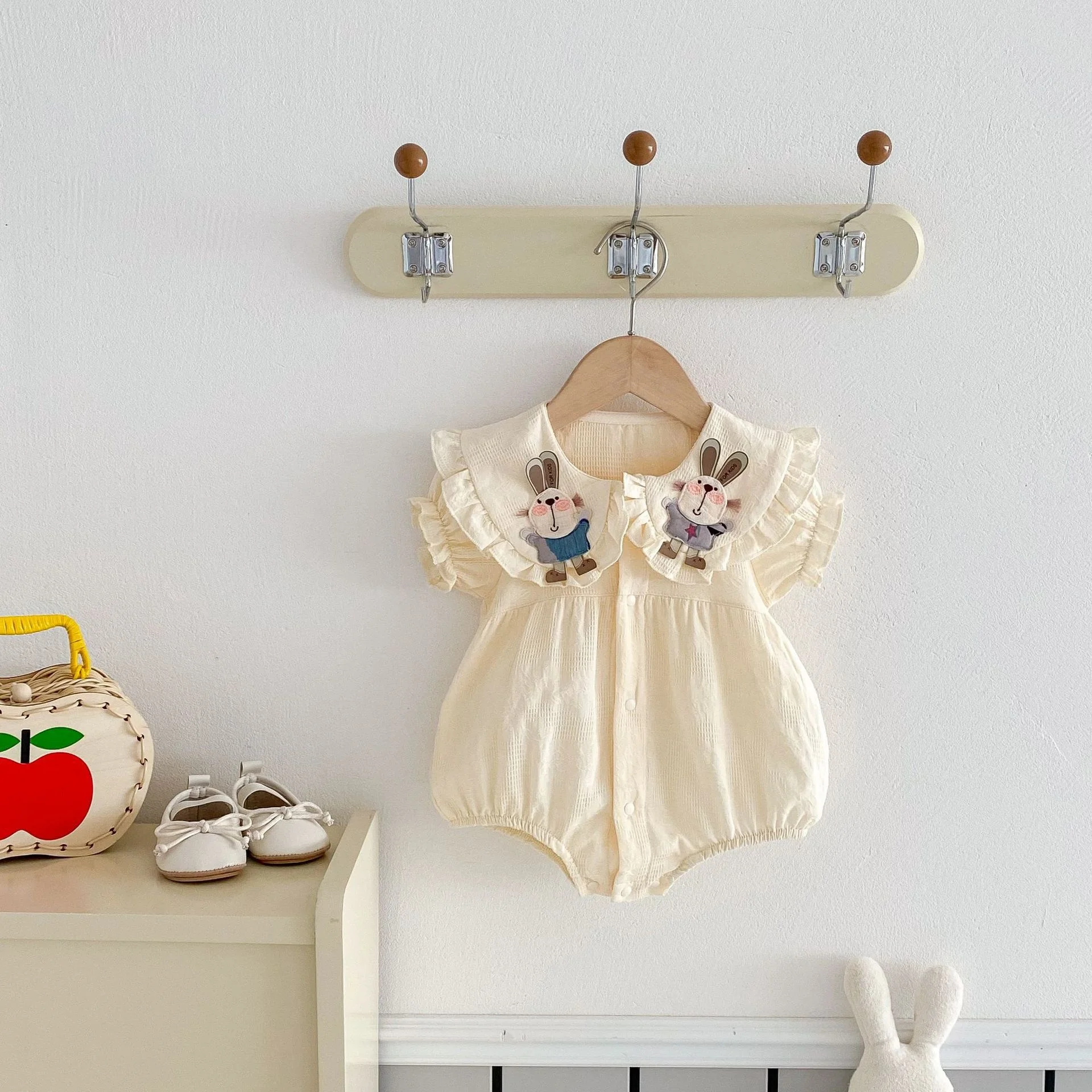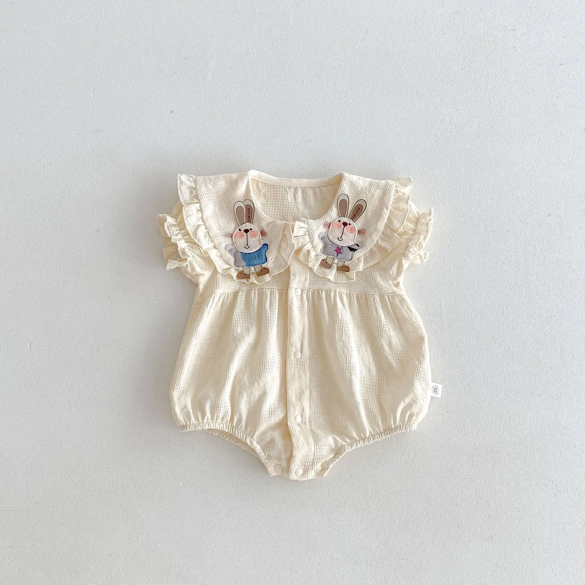 Custom Baby Clothes Pure Cotton 3D Rabbit Doll Collar Lace Casual Outfit Baby Rompers