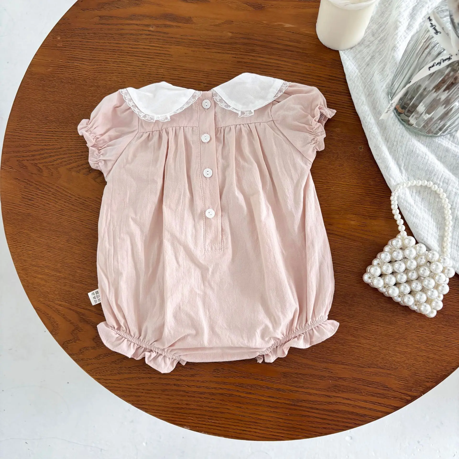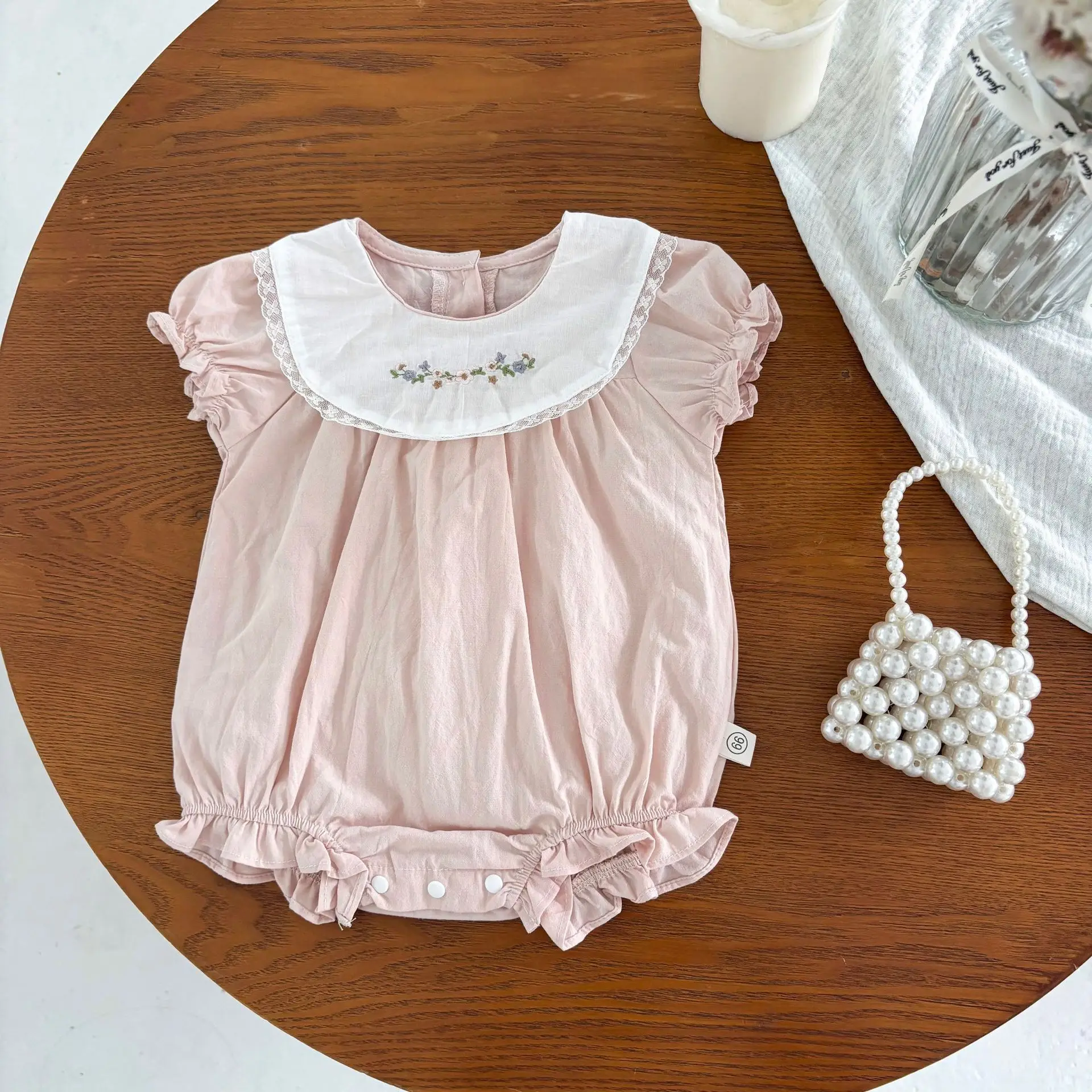 New Cotton Casual ODM Baby Clothes Girl Summer Short-Sleeved Jumpsuit Embroidered Flower Romper