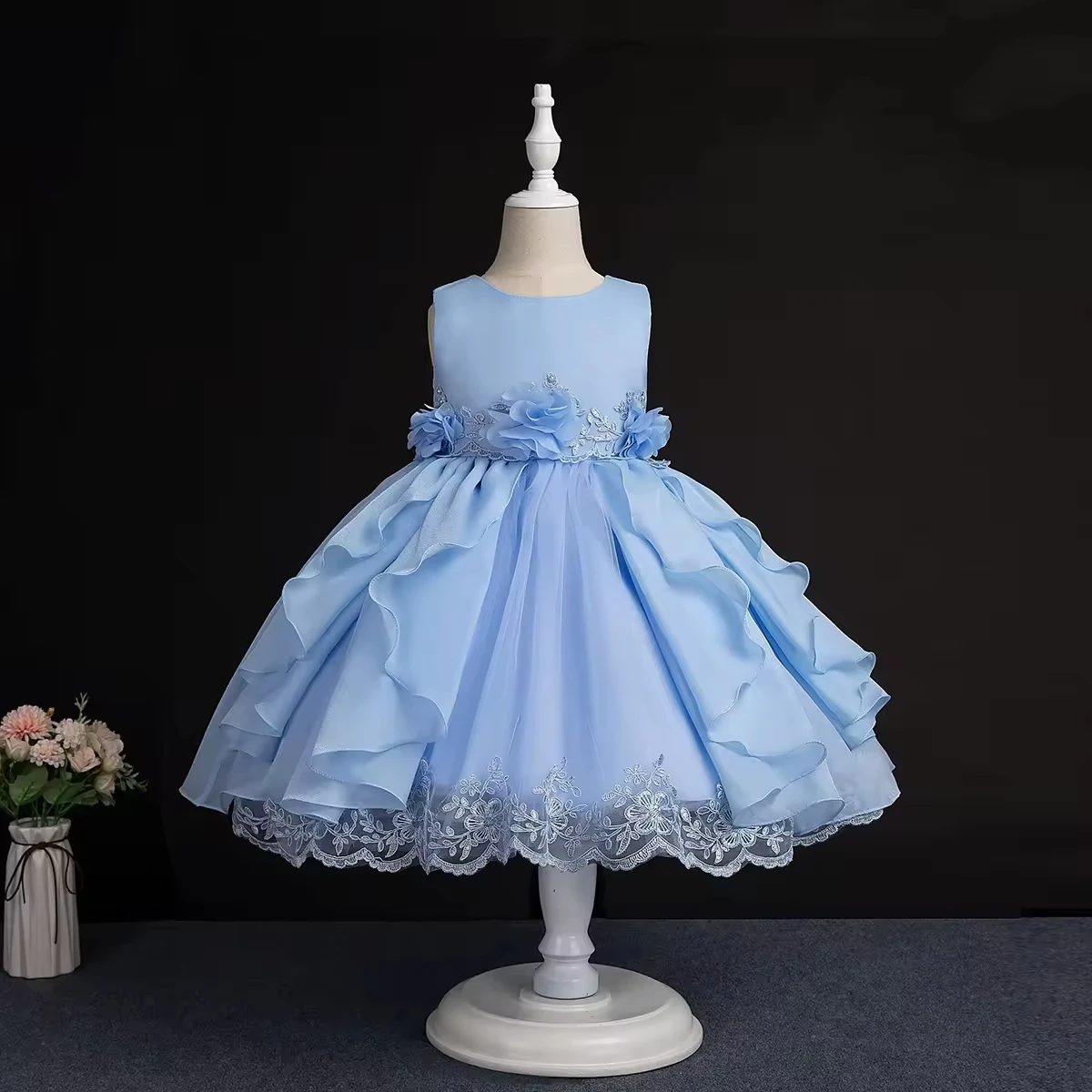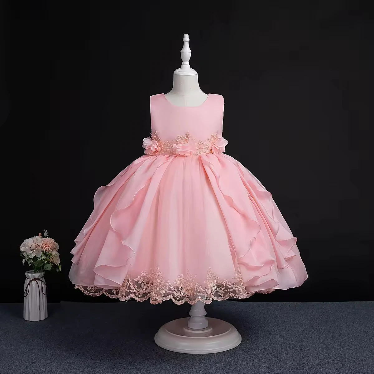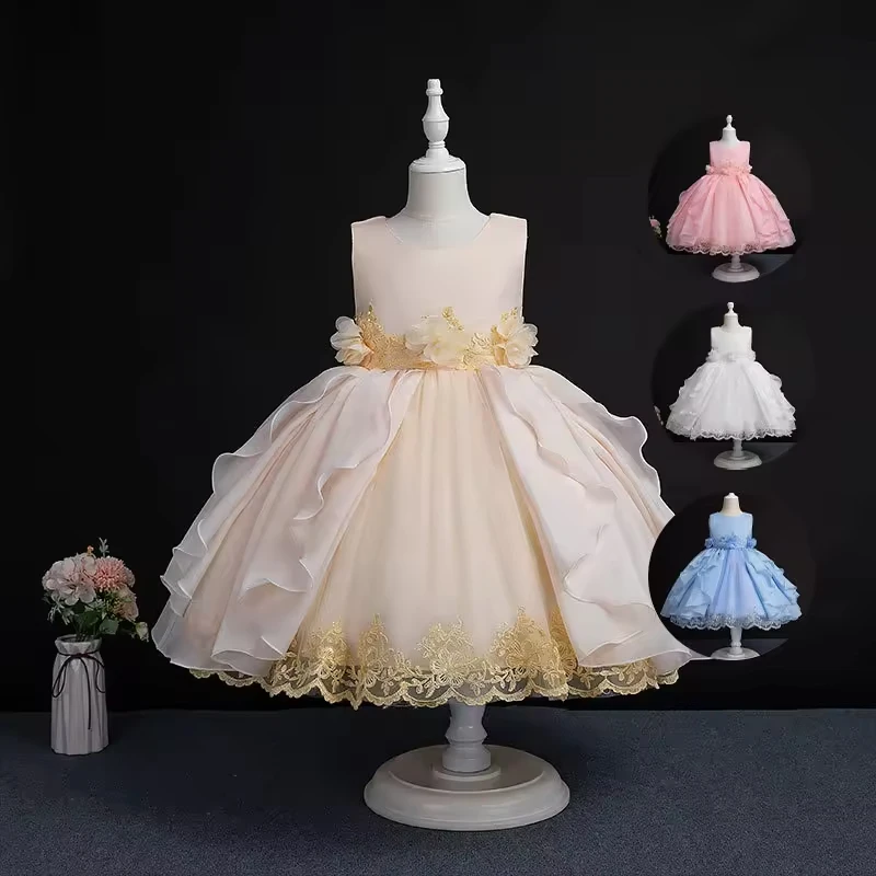 European Style Girl Wedding Dress for Kids Lovely Birthday Party Tutu Dresses for Girls 2-12 Years Old Sleeveless