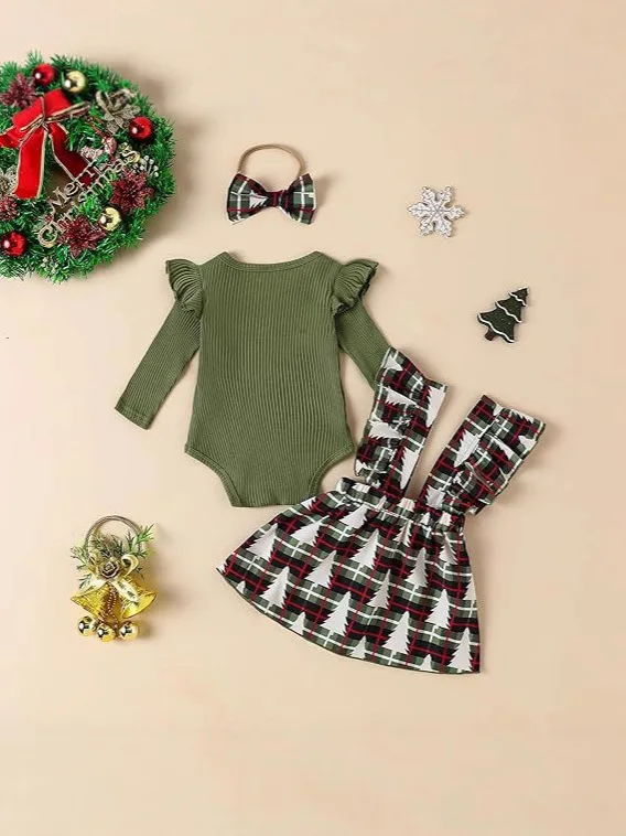Foreign Trade Sweet Children's Wear New Autumn Girls' Knitted Flying Sleeve Top Strap Skirt Set Hair Band Three-piece Set