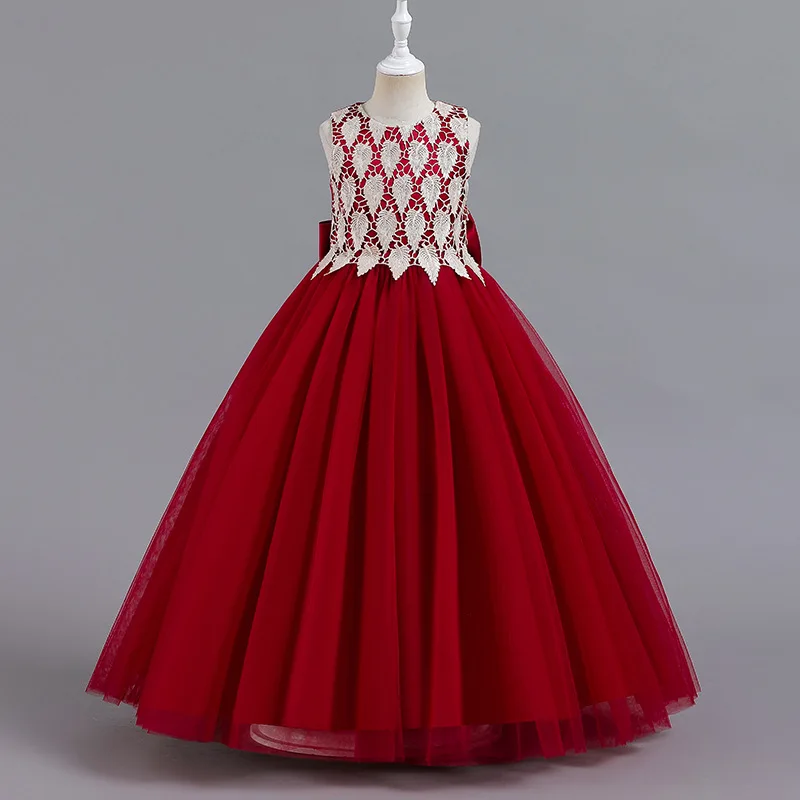 New Style Lace 3-9 Years Girl Birthday Party Sleeveless Design Gown Children Dresses