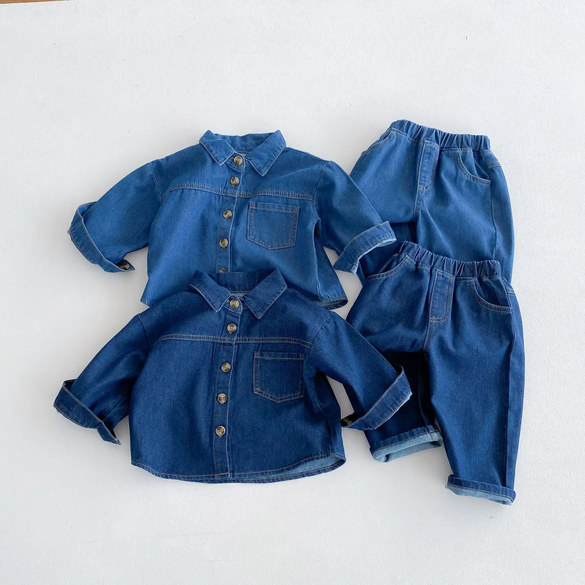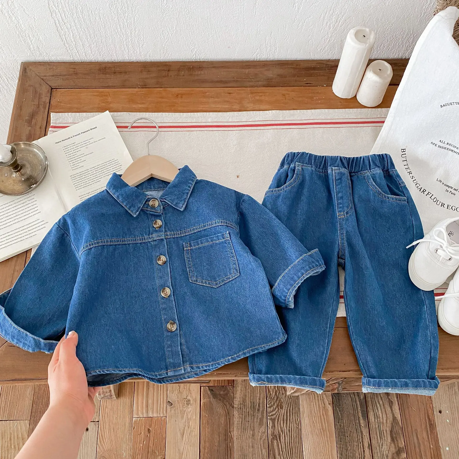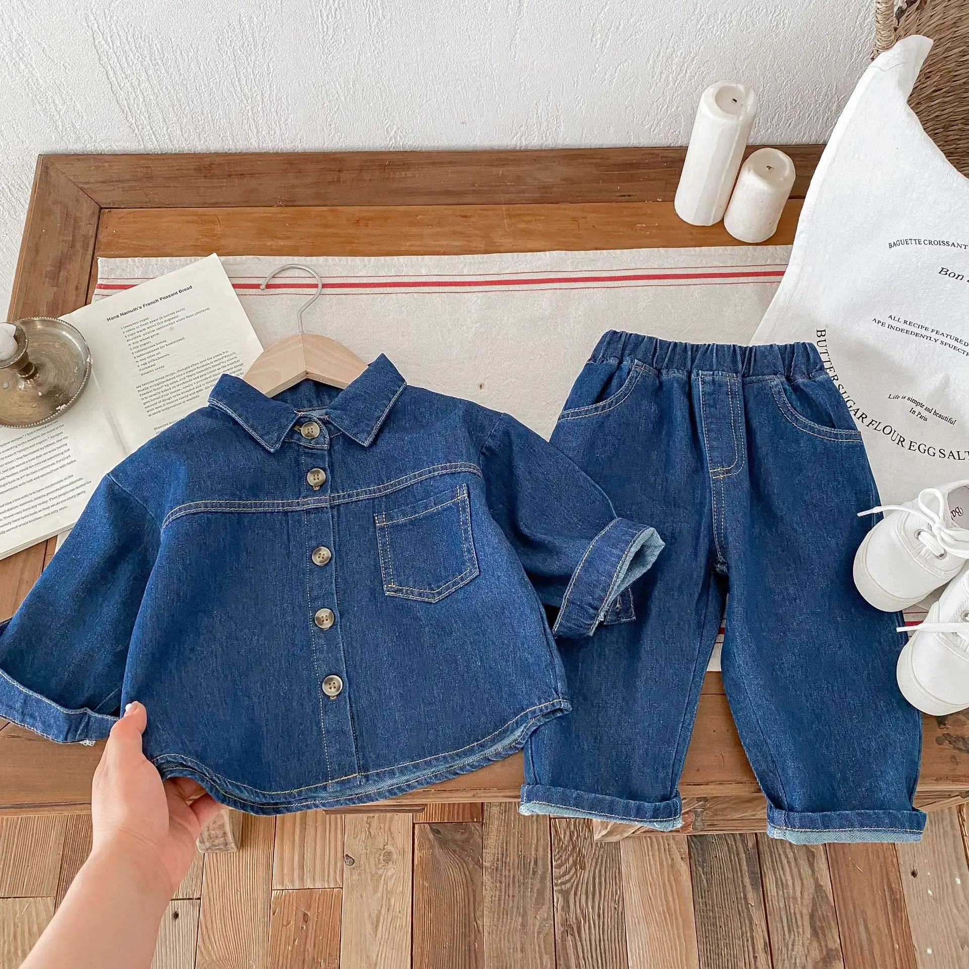 880 Autumn Arrival Infant Baby Girls Jeans Blouse with Pant Child Kids Boy Denim 2 Pcs Clothing Sets Wholesale
