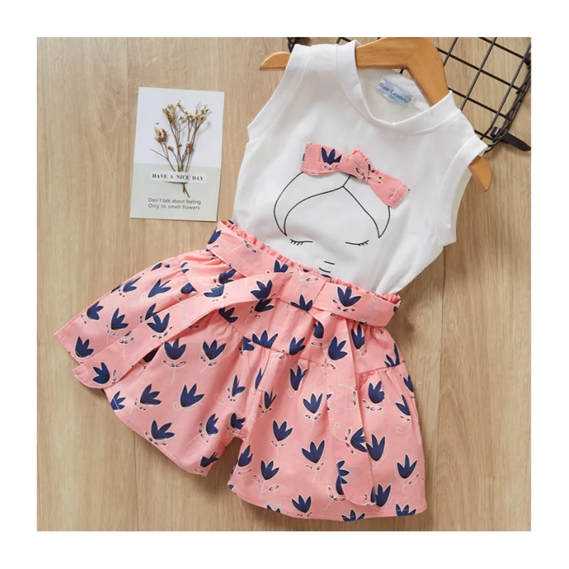 Summer Clothing Sets for Girls New Model Toddler Baby Kids Suits Short Sleeve Corduroy and Cotton with Printed Logo for Girls
