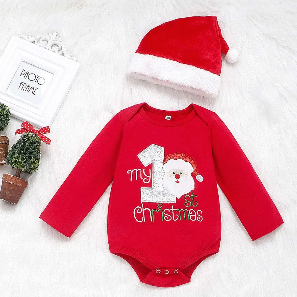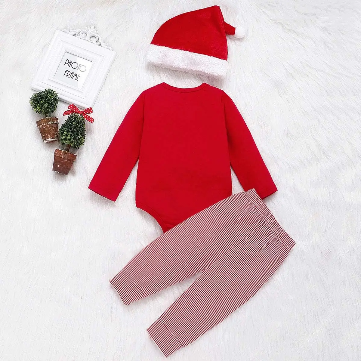 Cartoon Christmas Outfits Baby Boys Girls Santa Claus Rompers Bodysuit Pants with Christmas Hat 3 Pcs