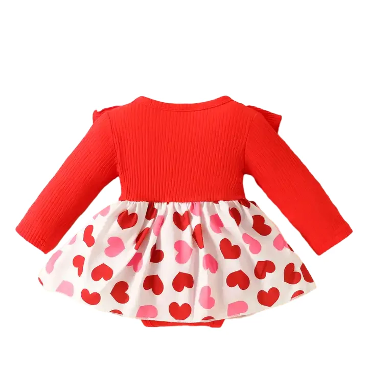 Customizable Hot Selling Printing Heart Valentine's Day Dresses Autumn Long Sleeve Casual Girl Dresses